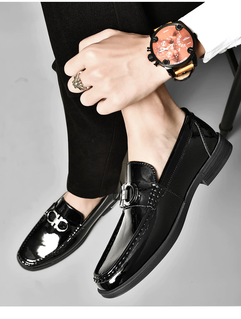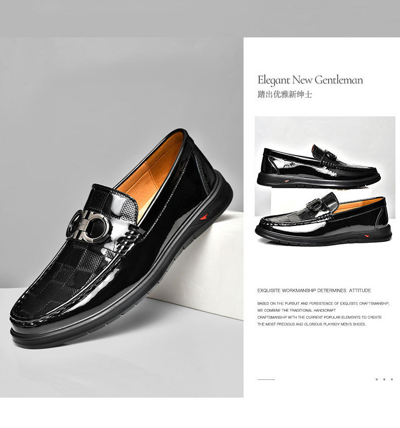 라이브 방송 폭발 정품 가죽 Cowhide Pea 신발 국경 플러스 사이즈 남성 신발 특허 가죽 슬립 온 운전 신발 캐주얼 가죽 신발