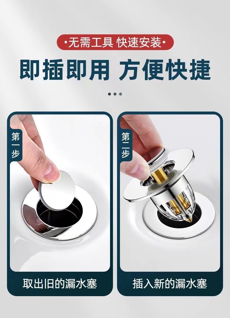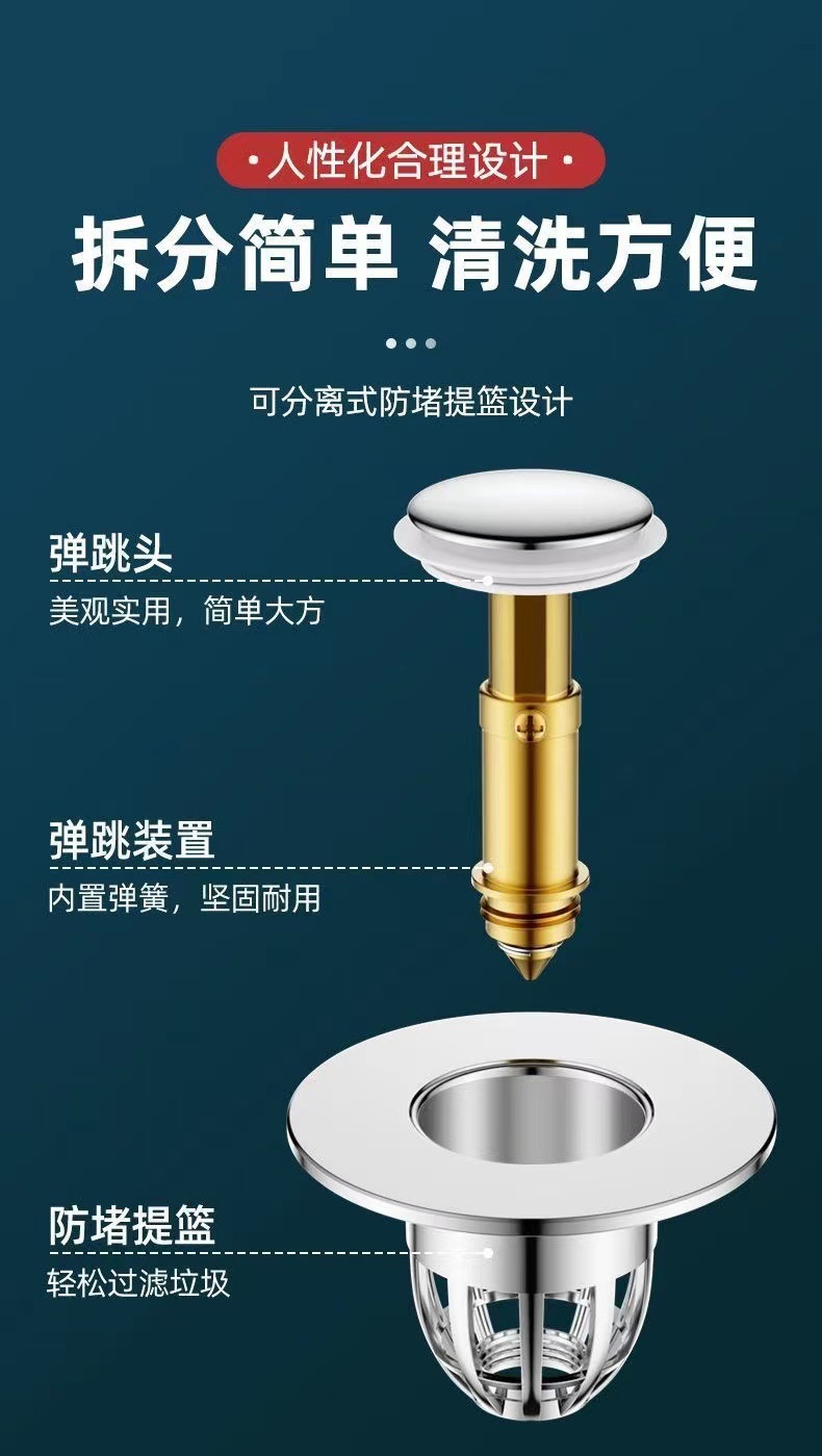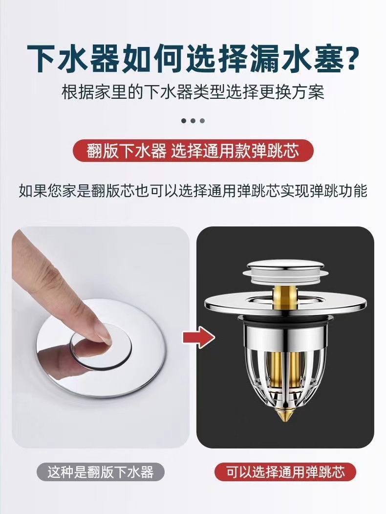 세면대 바운스 코어 누출 플러그 수도관 세척 테이블 수영장 액세서리 스테인레스 스틸 프레스 유형 분지 배수스토어 가기
