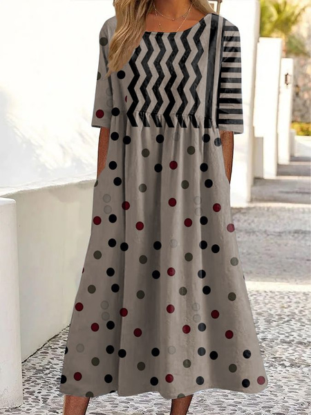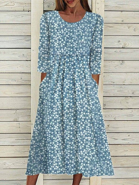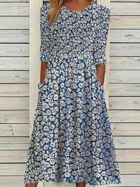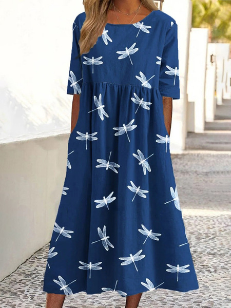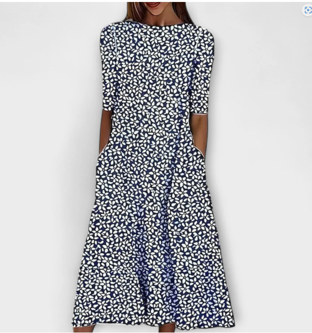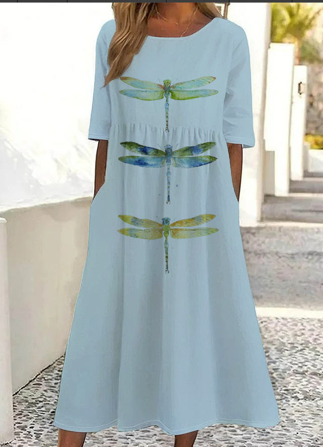 대외 무역 독립 역 아마존 국경 여름 새로운 중간 허리 여성 캐주얼 편안한 둥근 목 3D 인쇄 원피스스토어 가기