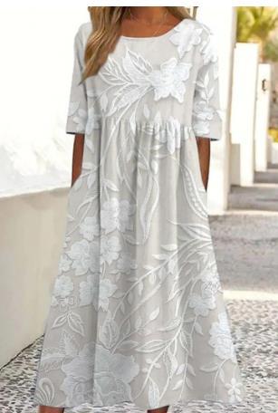 대외 무역 독립 역 아마존 국경 여름 새로운 중간 허리 여성 캐주얼 편안한 둥근 목 3D 인쇄 원피스