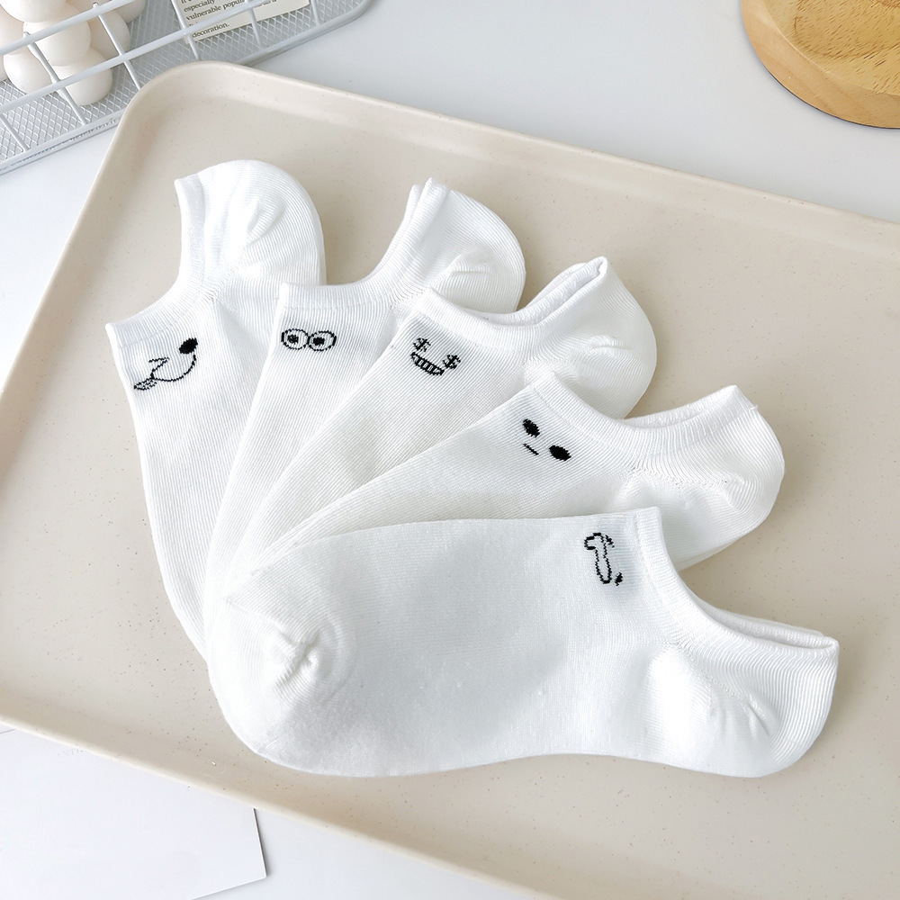 어린이를위한 흰색 재미있는 작은 표현 양말 여름 얇은 Ins 단색 모든 경기 짧은 귀여운 만화 보이지 않는 보트 양말스토어 가기