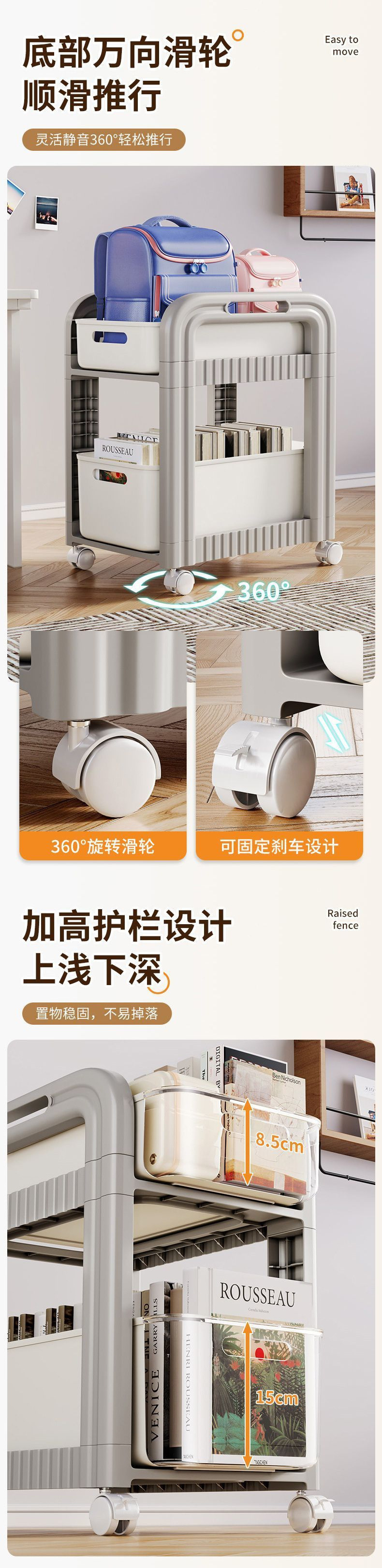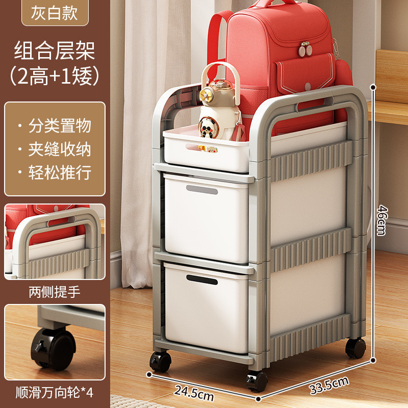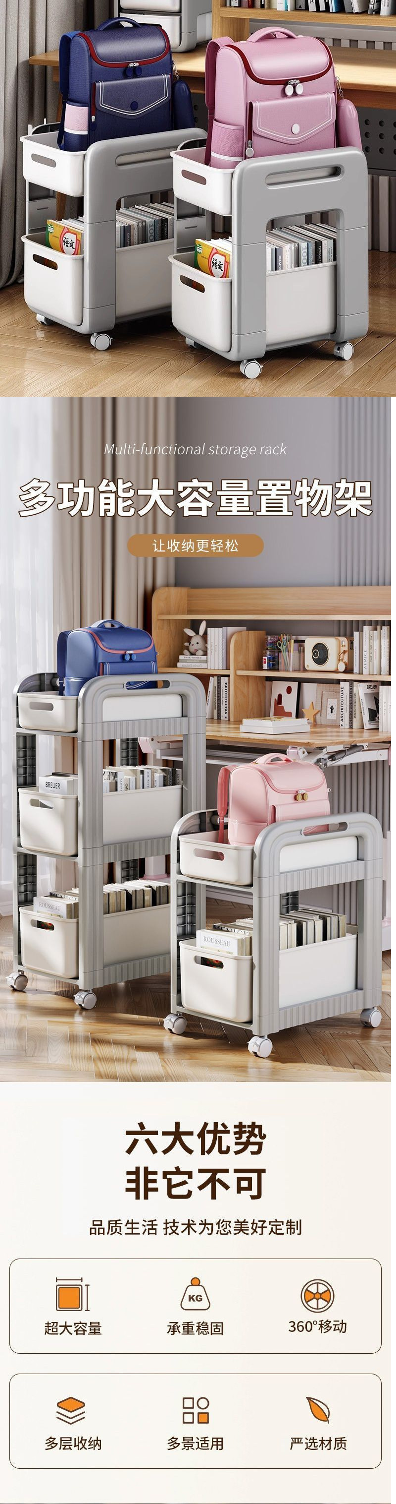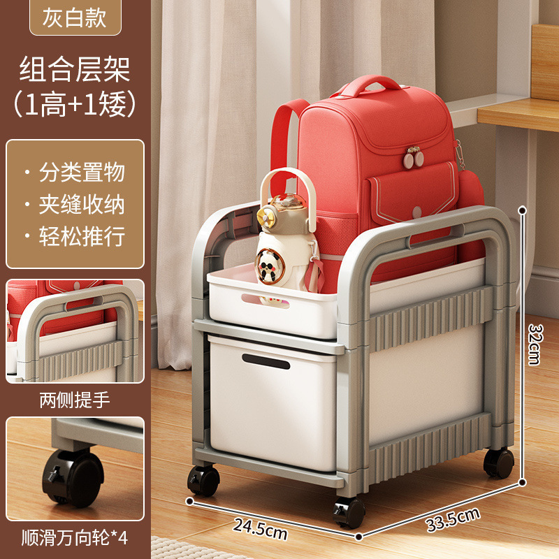 조용한 Schoolbag 학생 보관 랙 모바일 카트 다층 책 보관 바닥 가정용 테이블 풀리