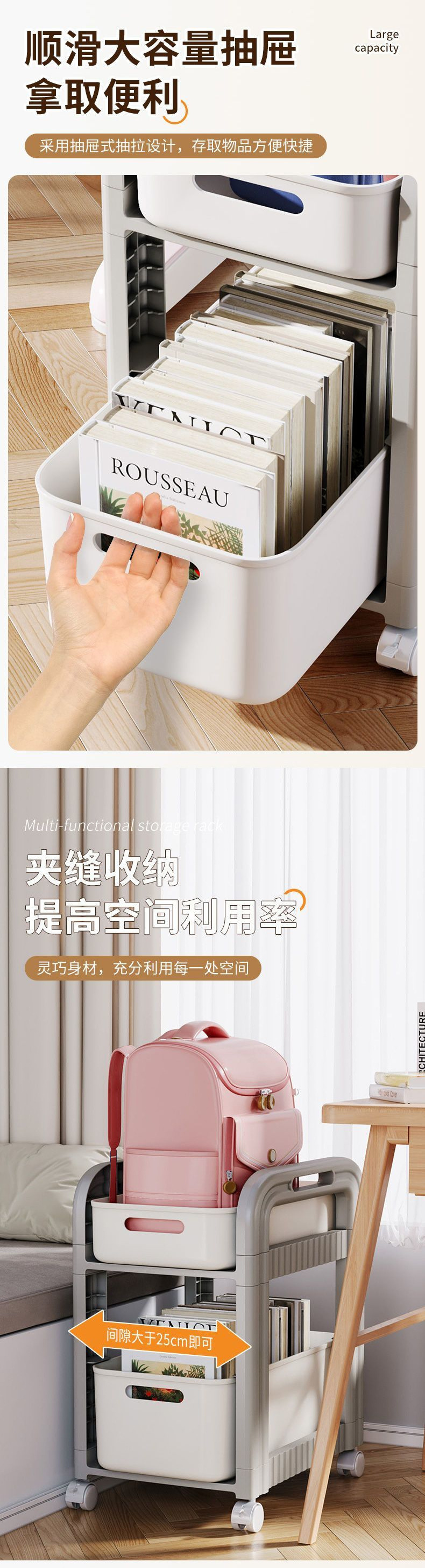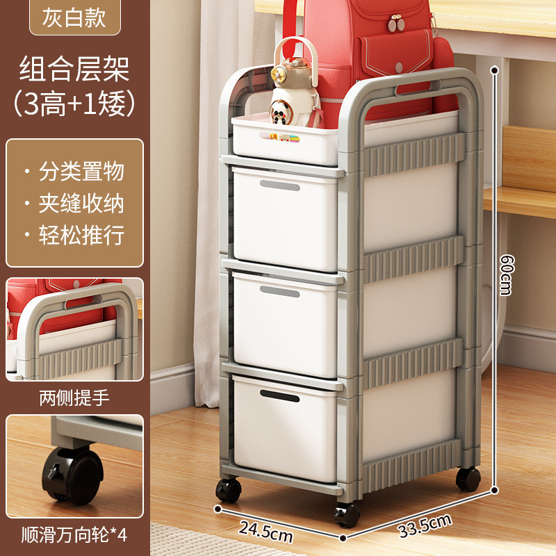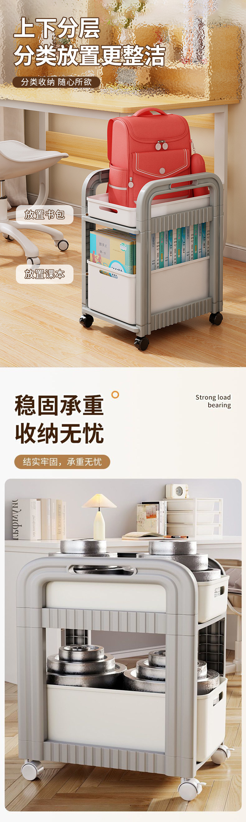 조용한 Schoolbag 학생 보관 랙 모바일 카트 다층 책 보관 바닥 가정용 테이블 풀리