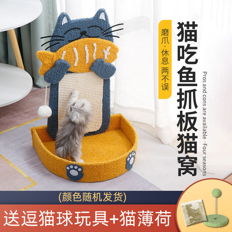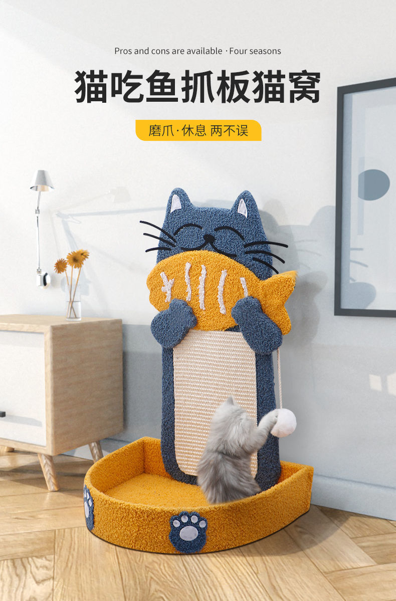 • 고양이가 생선을 먹는다 - 고양이 둥지 일체형 긁는 기둥