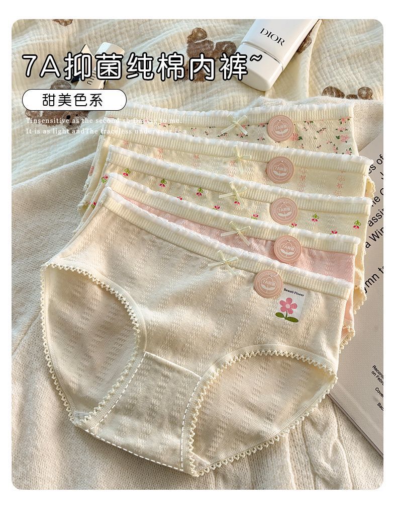 7A 항균 순면 속옷 여성의 달콤한 일본 중간 허리 순수한 면 항균 소녀의 새로운 학생 통기성 삼각형 반바지스토어 가기