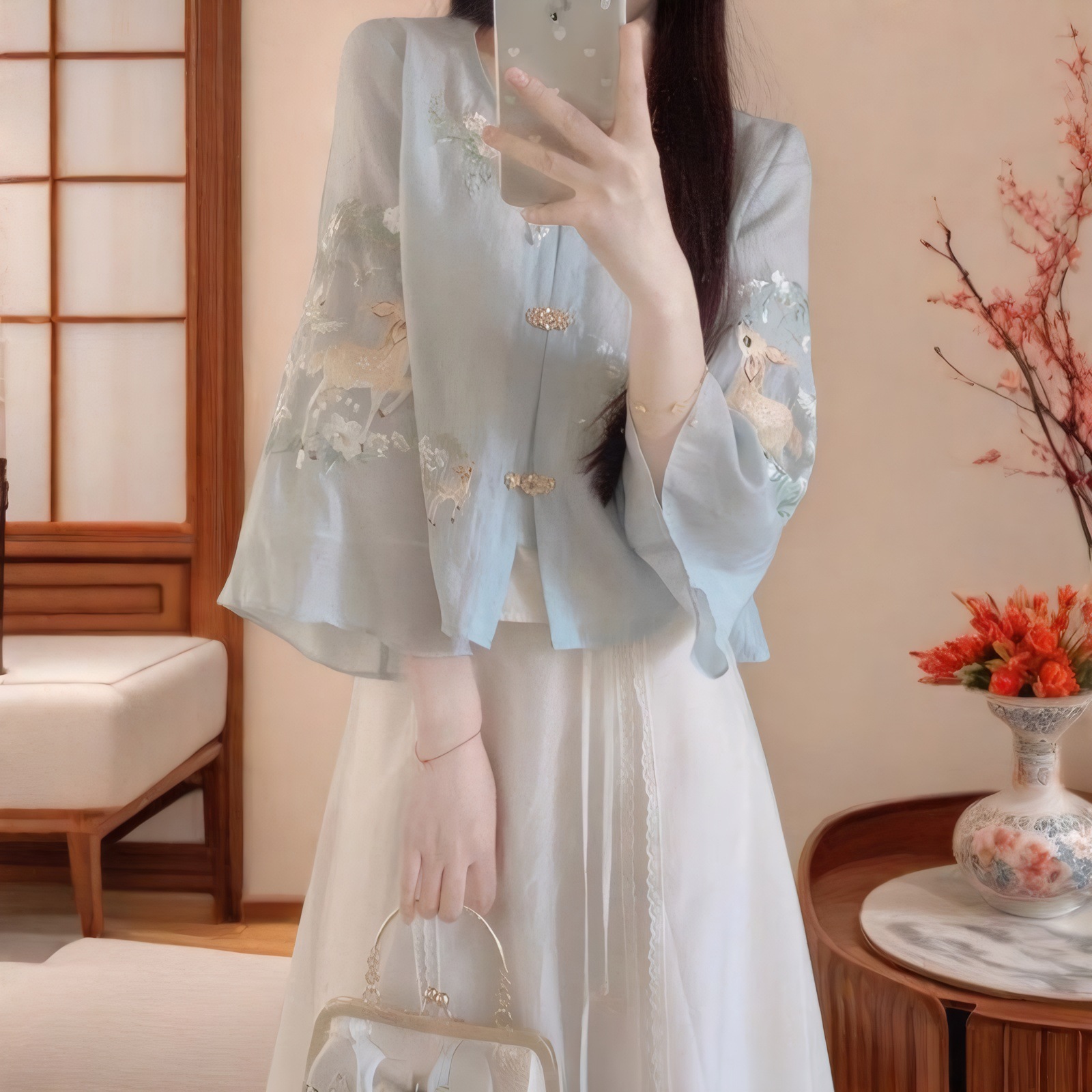 새로운 중국 스타일 국가 스타일 고대 코트 한푸 여성 차 예술 의류 하이 엔드 탕 세트 여름 탑 원피스 셔츠 투피스 세트스토어 가기