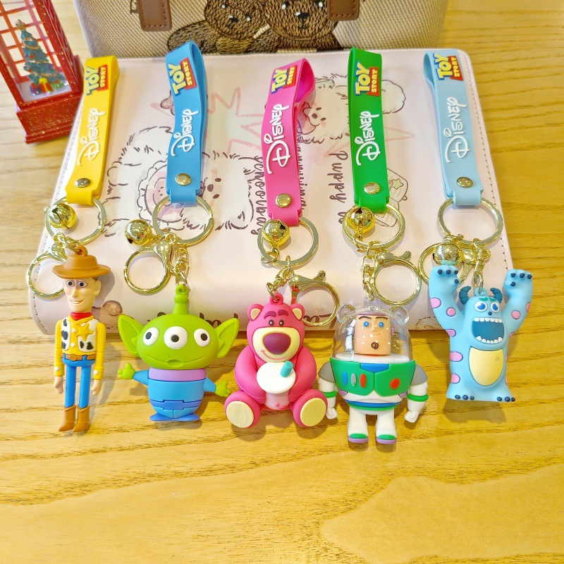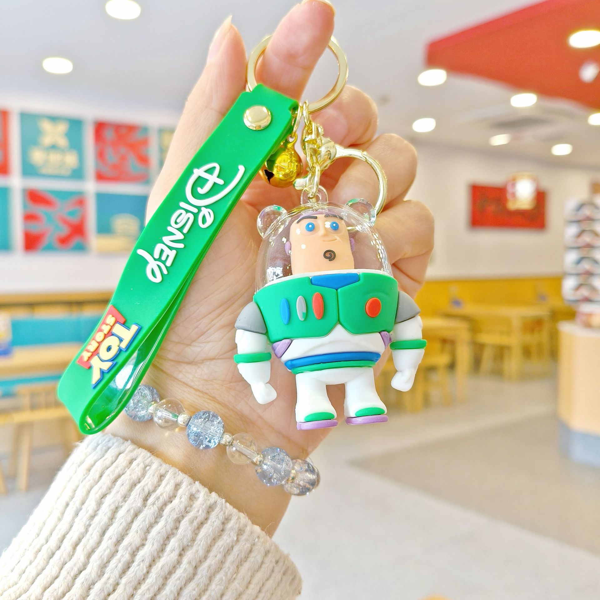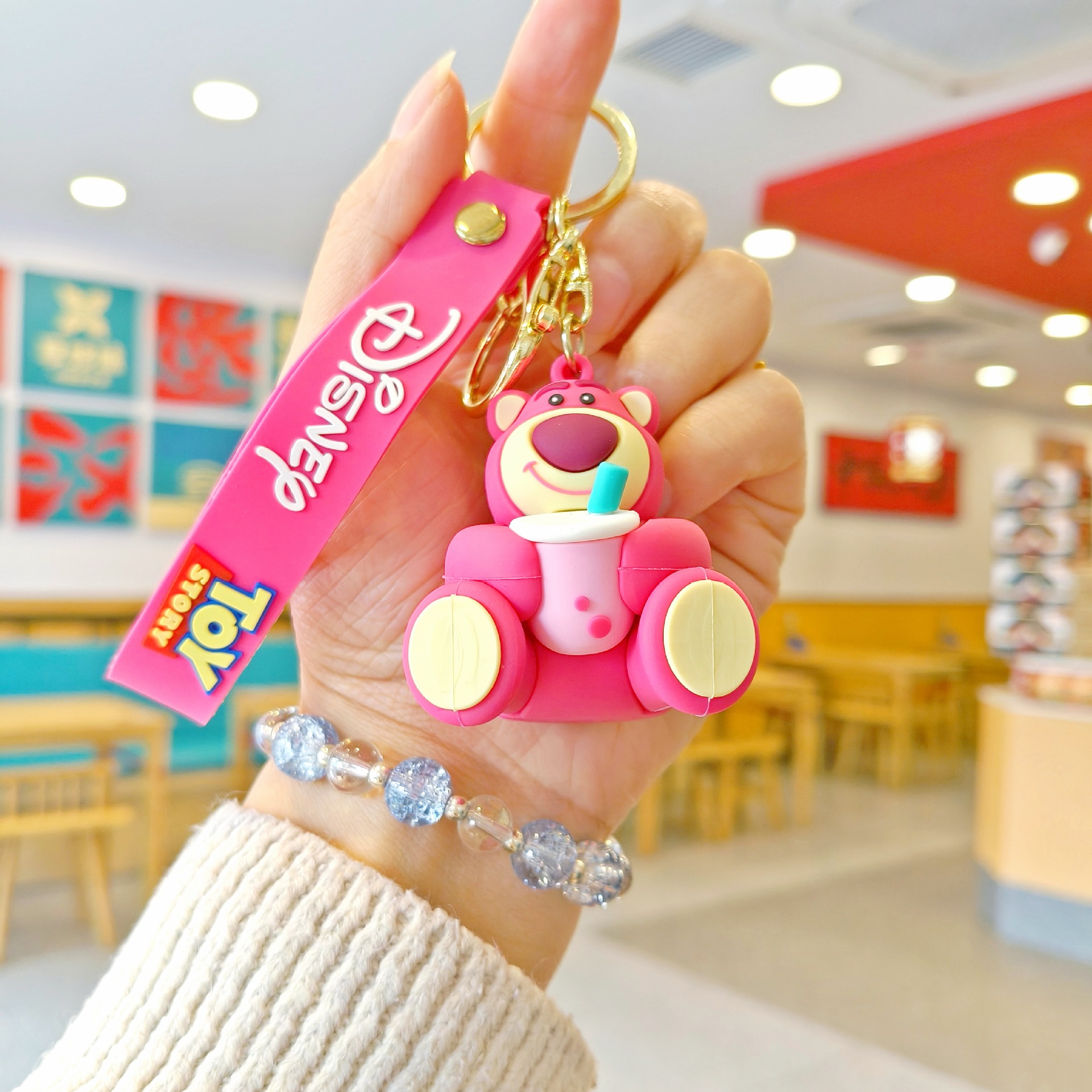 만화 귀여운 버즈 라이트 이어 딸기 곰 키 체인 펜던트 커플 학교 가방 자동차 열쇠 고리 펜던트 작은 선물