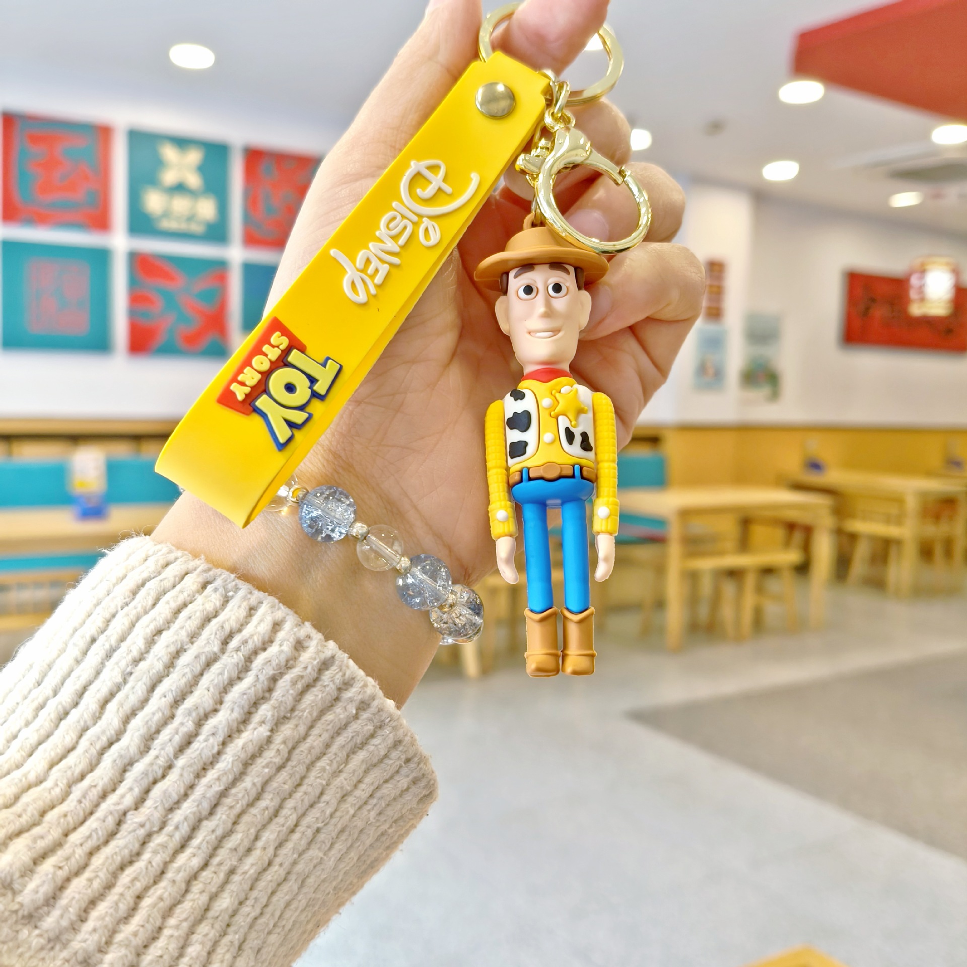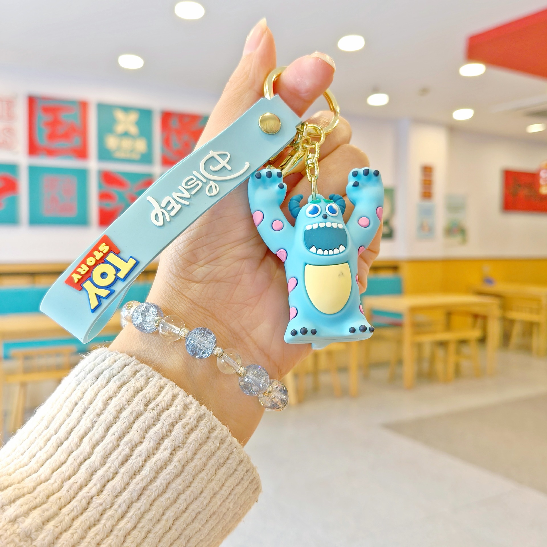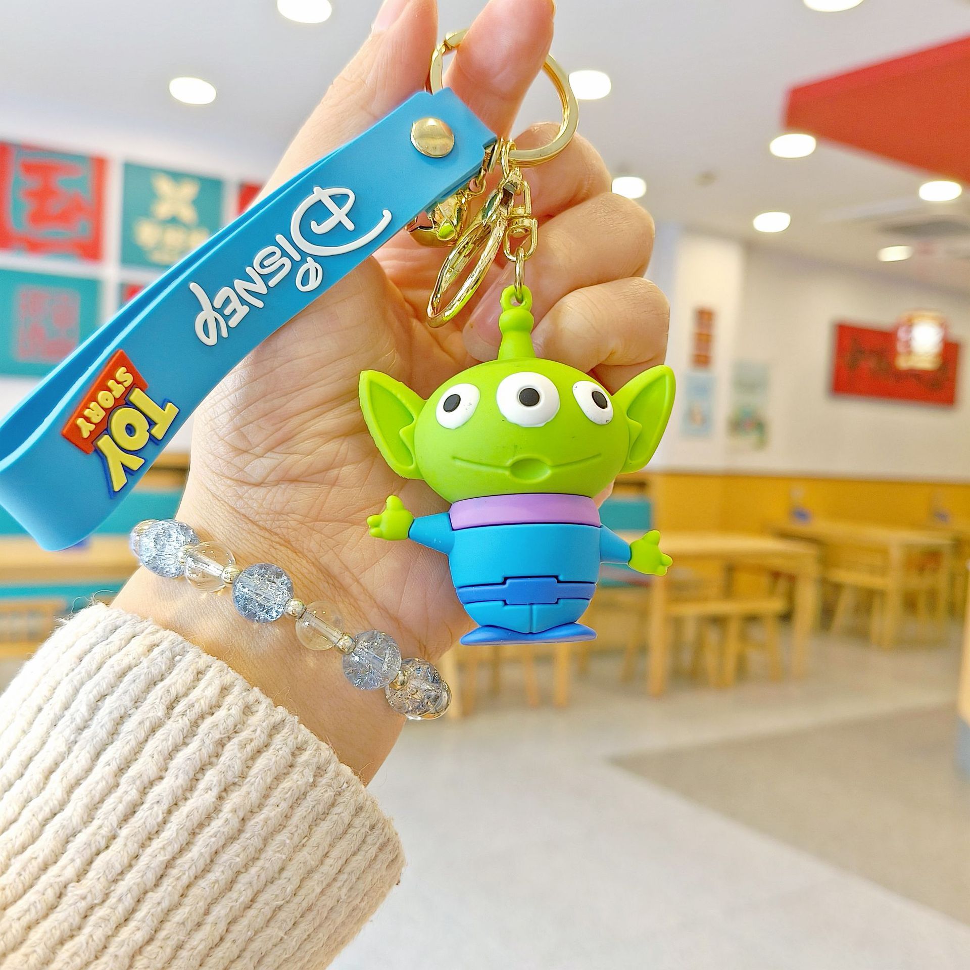 만화 귀여운 버즈 라이트 이어 딸기 곰 키 체인 펜던트 커플 학교 가방 자동차 열쇠 고리 펜던트 작은 선물