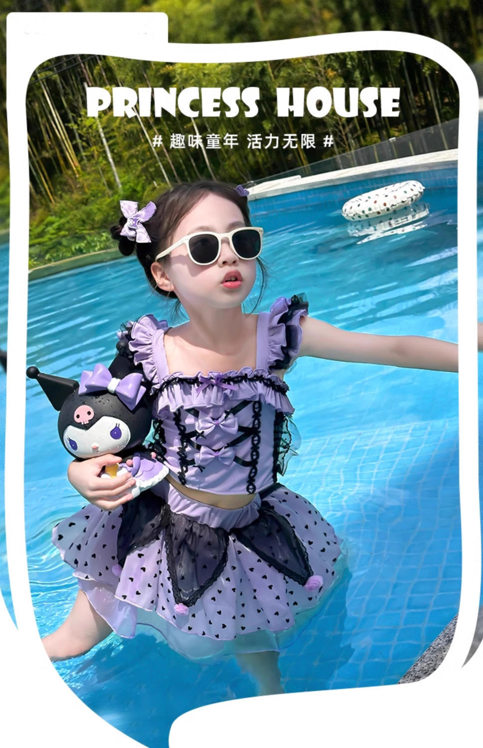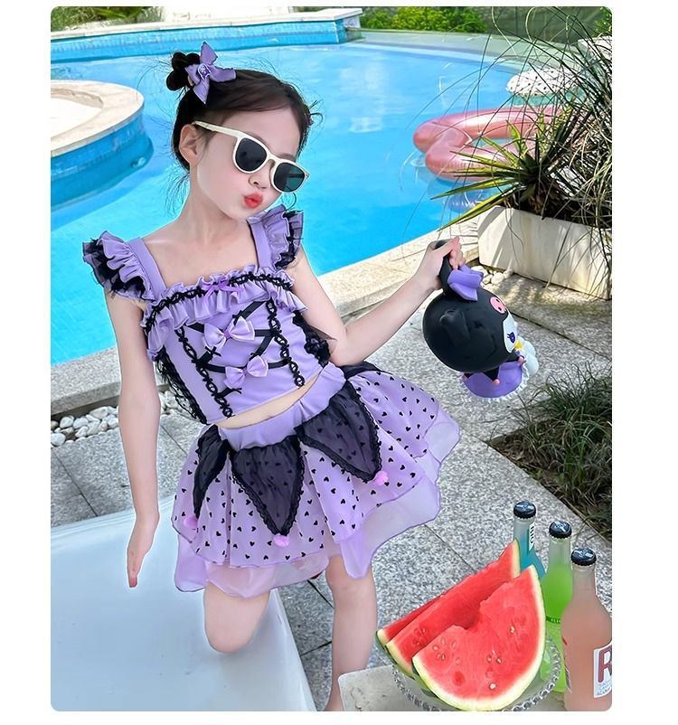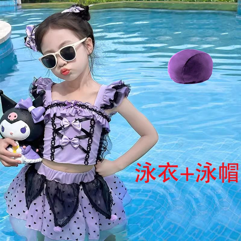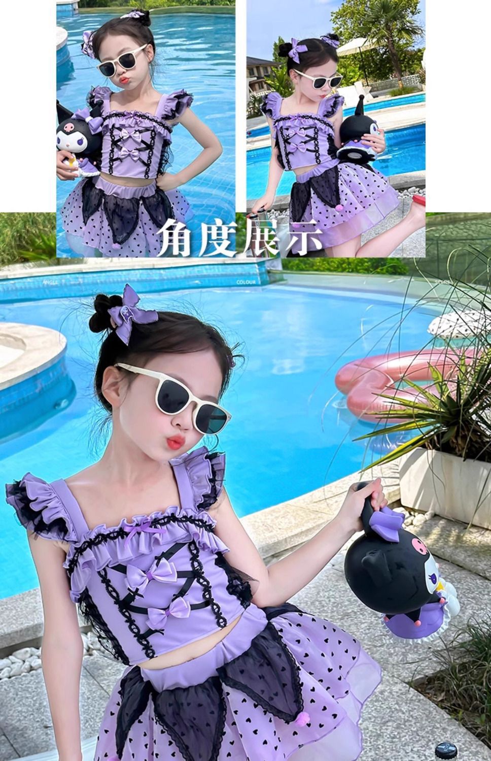 쿠로미 컬러 여아 여름 수영복 여름 달콤하고 시원한 스타일 레이스 장식 공주 스커트 투피스 스플릿 수영복