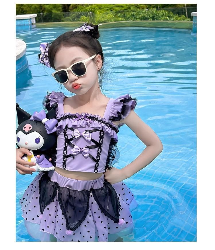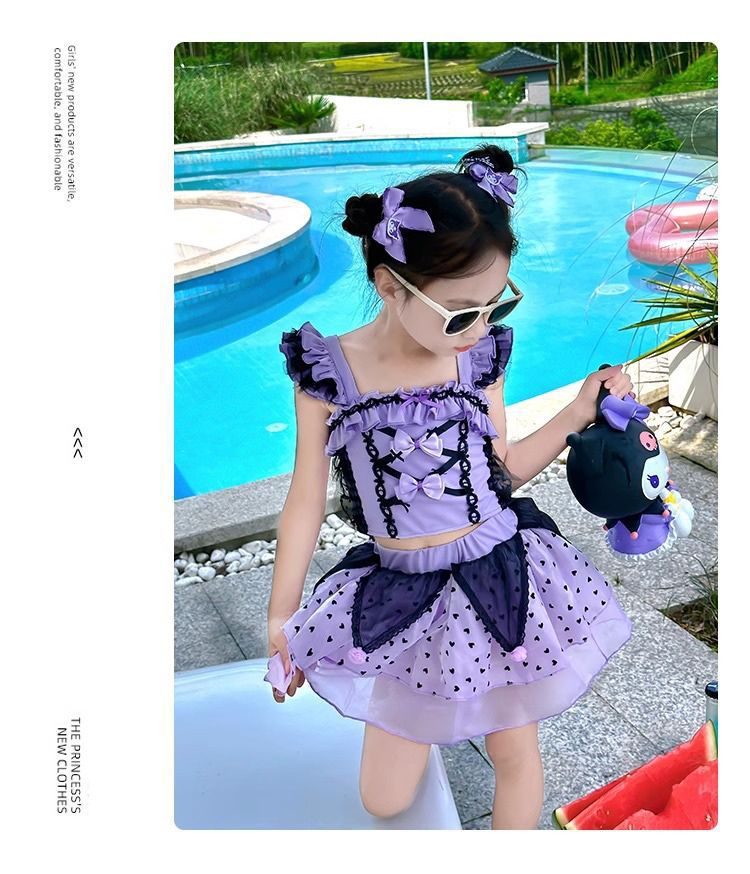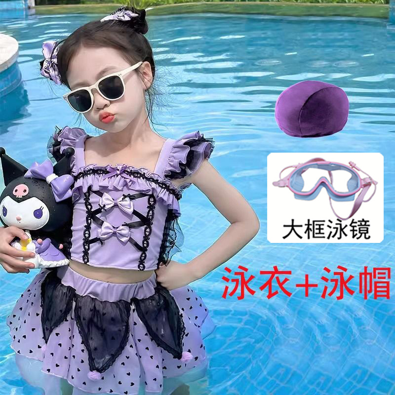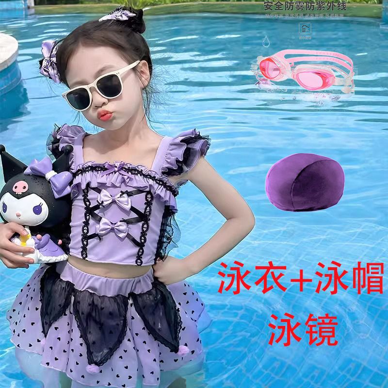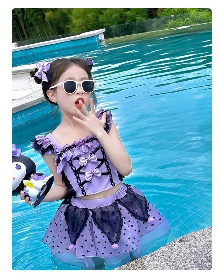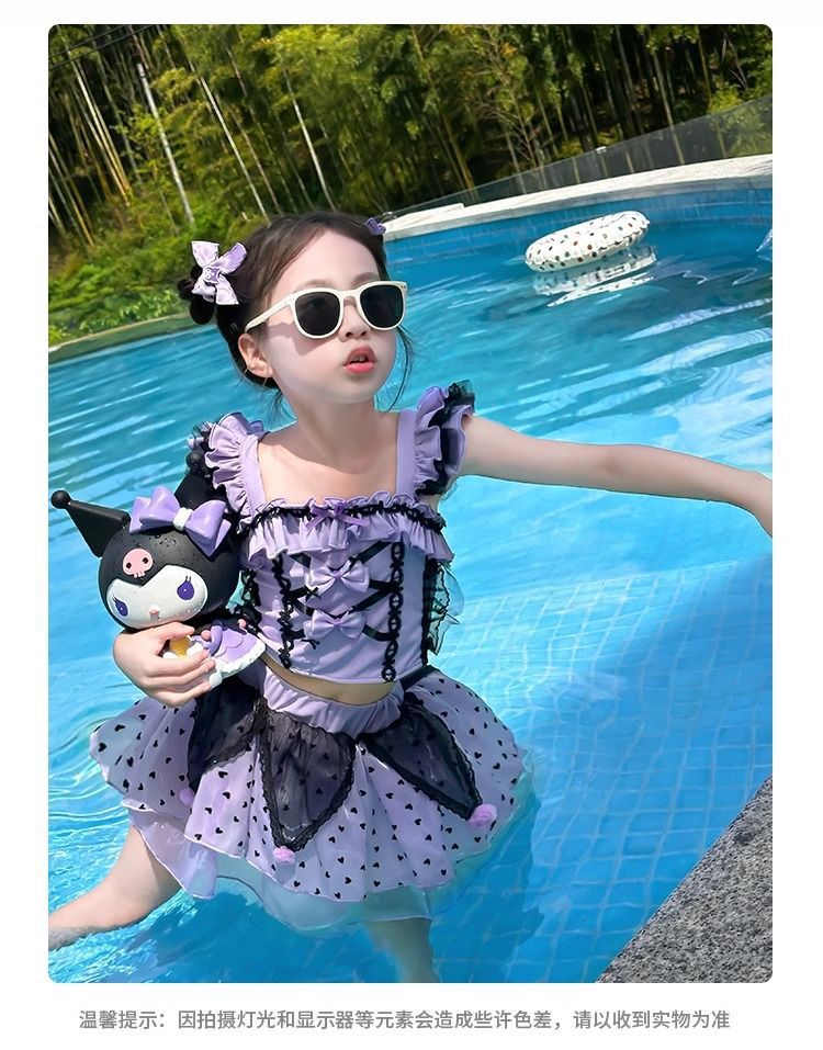 쿠로미 컬러 여아 여름 수영복 여름 달콤하고 시원한 스타일 레이스 장식 공주 스커트 투피스 스플릿 수영복