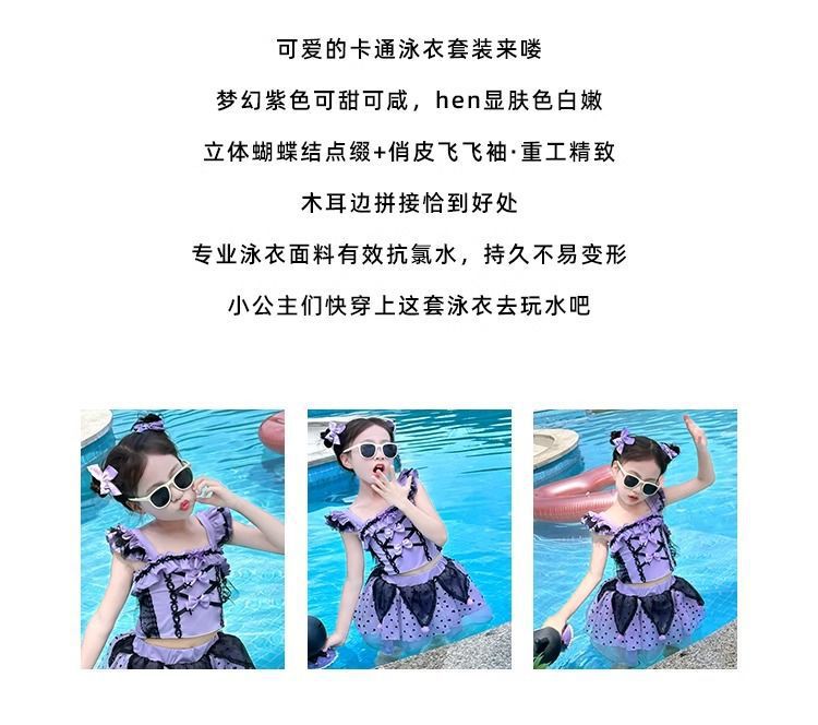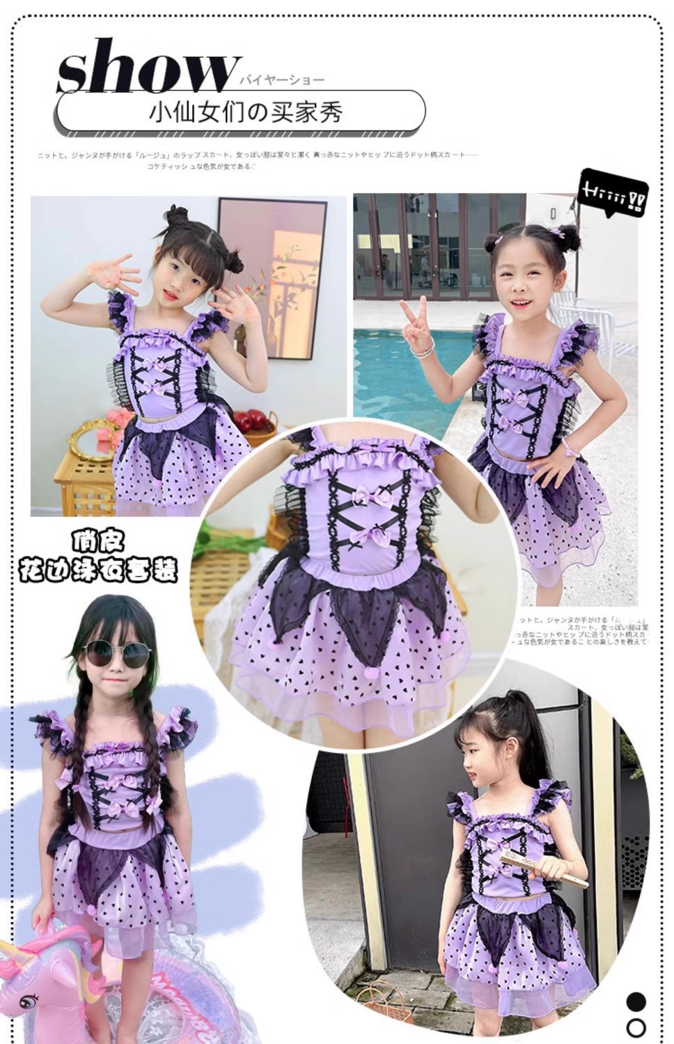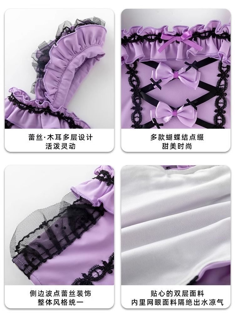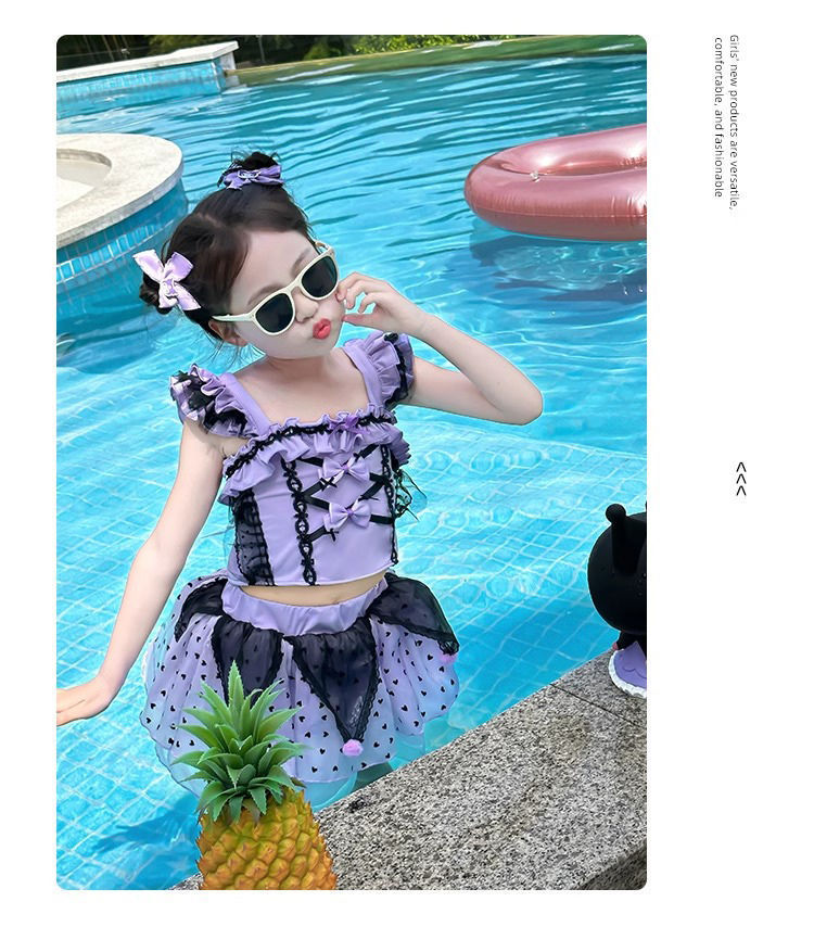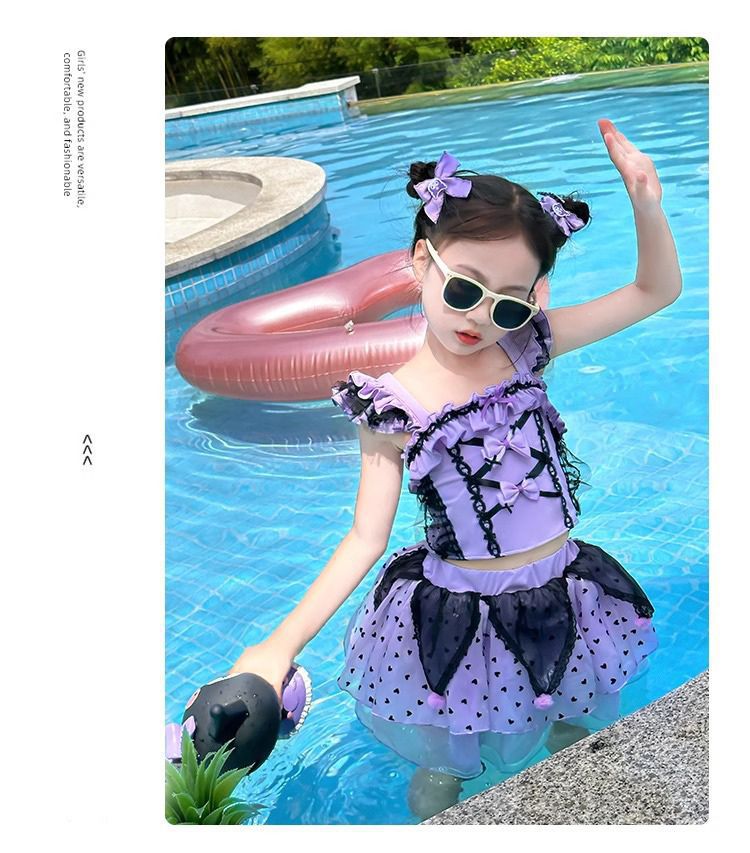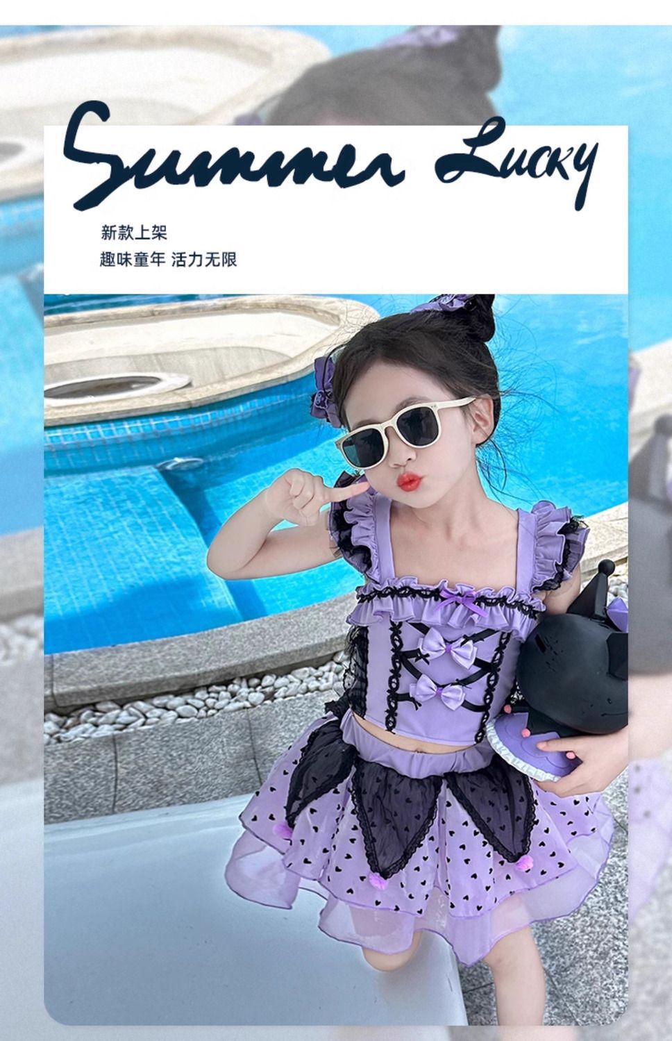 쿠로미 컬러 여아 여름 수영복 여름 달콤하고 시원한 스타일 레이스 장식 공주 스커트 투피스 스플릿 수영복스토어 가기