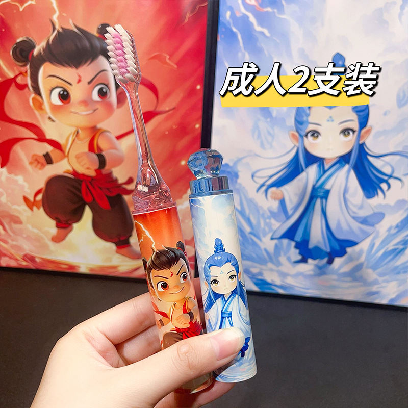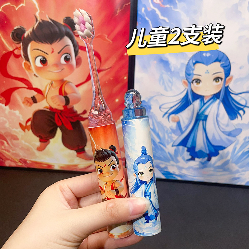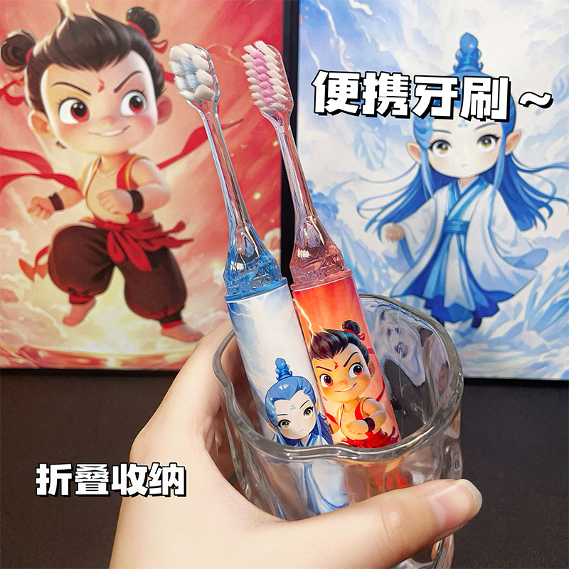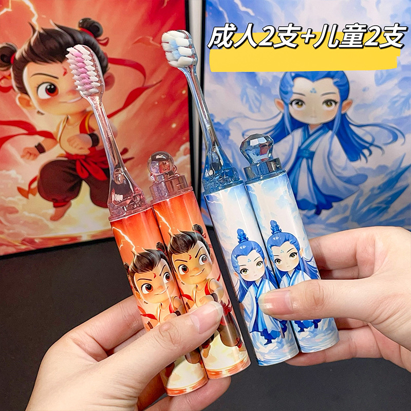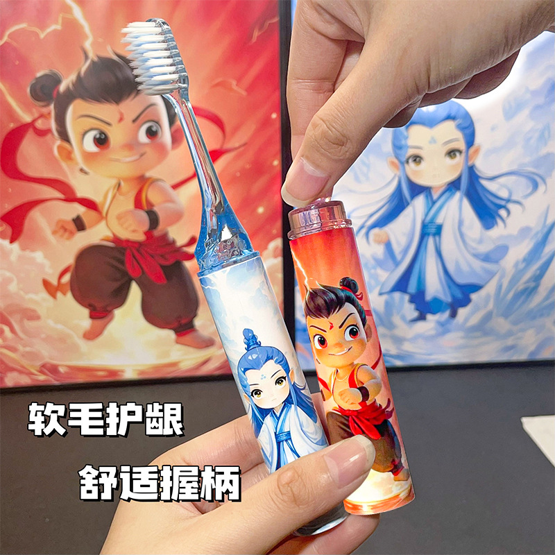 Nezha Aobing 만화 어린이 휴대용 립스틱 칫솔 부모-어린이 부드러운 머리 성인 칫솔 고급 가정용 비즈니스 여행스토어 가기