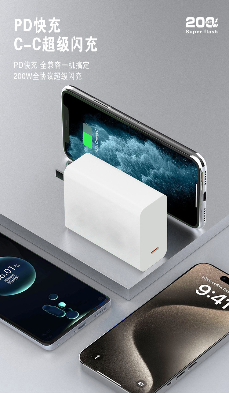 VIVO 애플 화웨이 샤오미 휴대 전화 어댑터 충전기 200W 질화 갈륨 빠른 충전과 호환 3C 인증