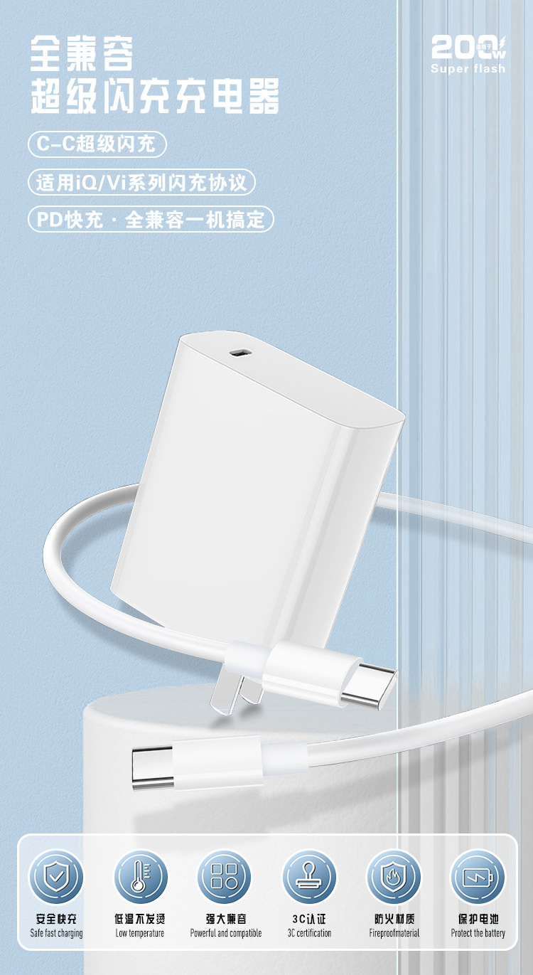 • 200W 고속 충전 [충전 헤드 + 데이터 케이블] Q15 박스와 호환 가능