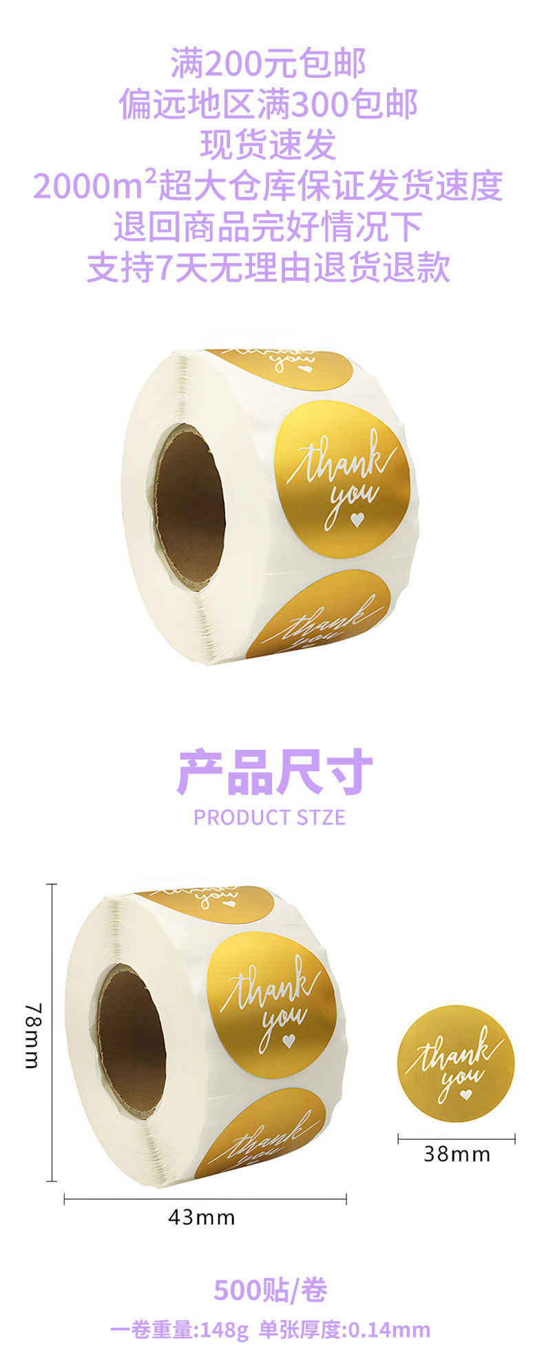 • 골드 감사 라벨 38MM (500 스티커/롤)