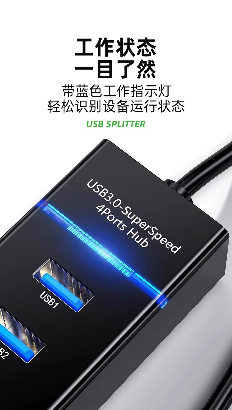 • 【USB3.0】블랙/라이트 포함 4포트 3.0-0.25m