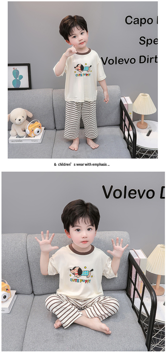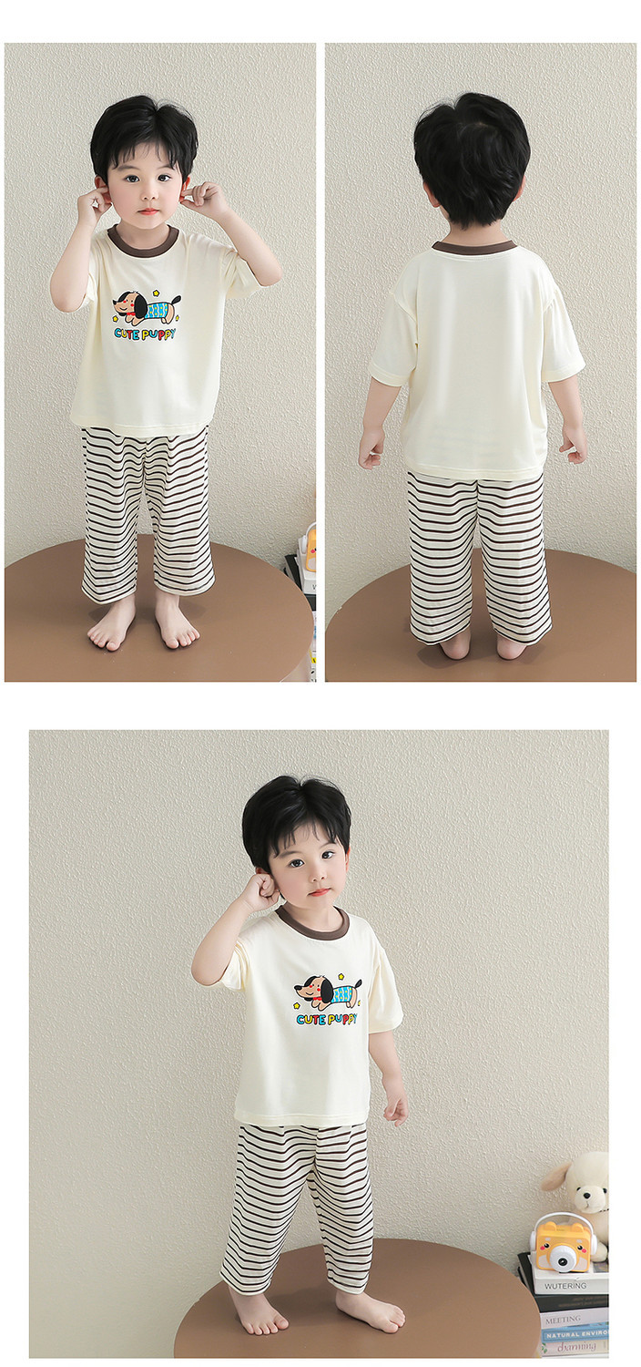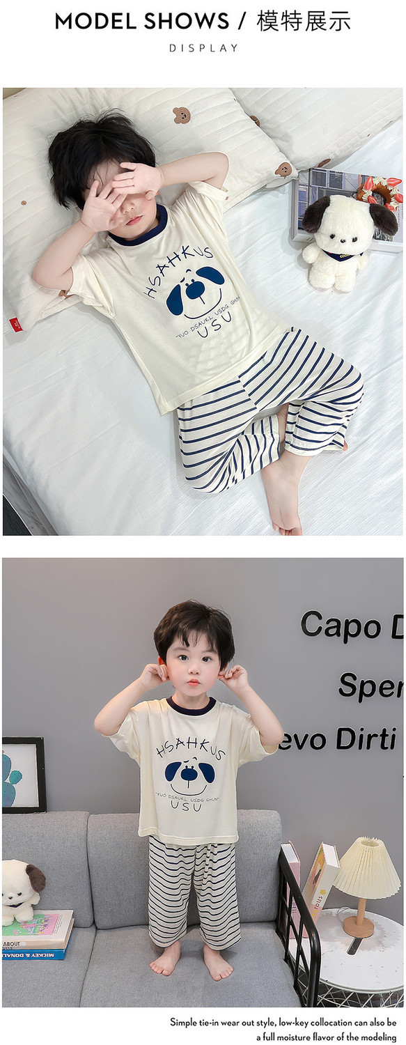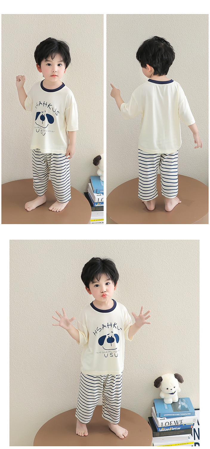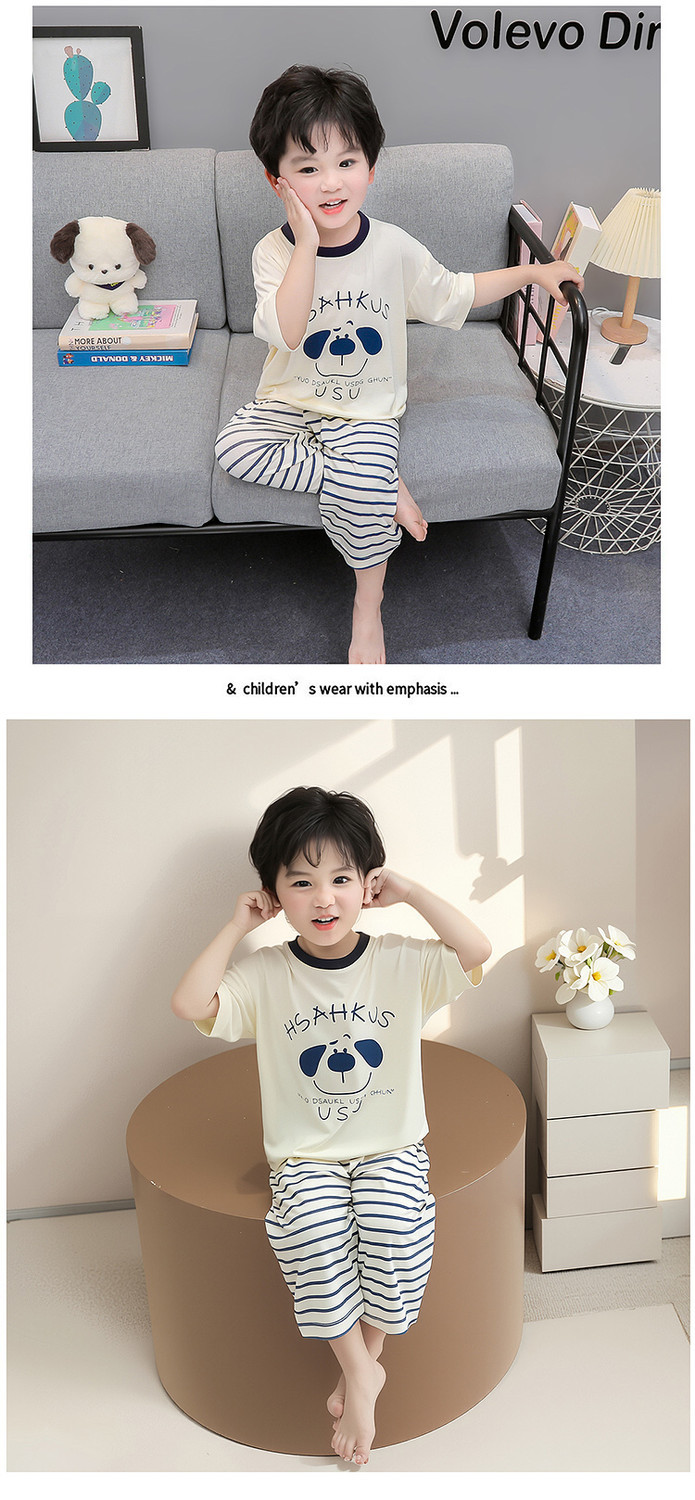소년 아기 줄무늬 바지 세트 어린이 홈 옷을위한 여름 얇은 아이스 실크 모달 에어컨 의류스토어 가기