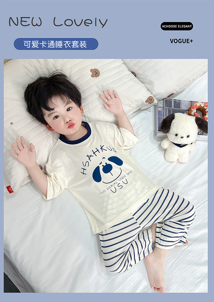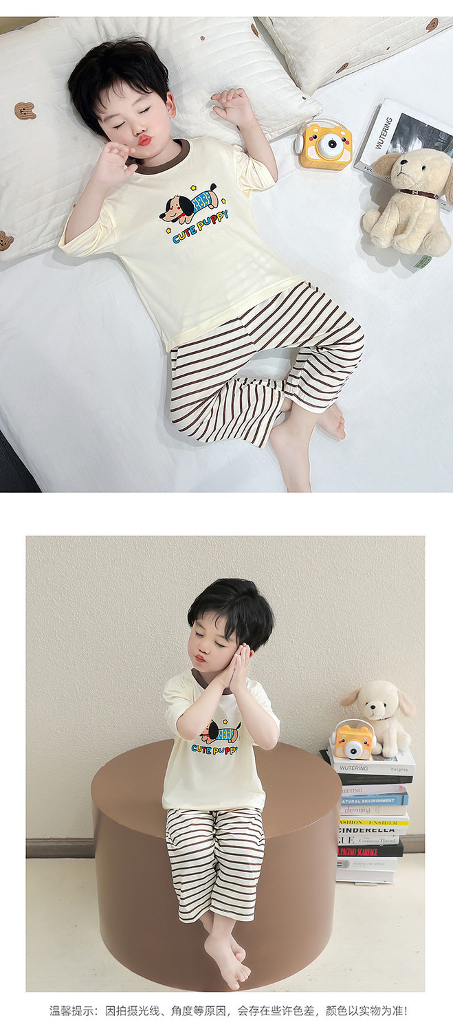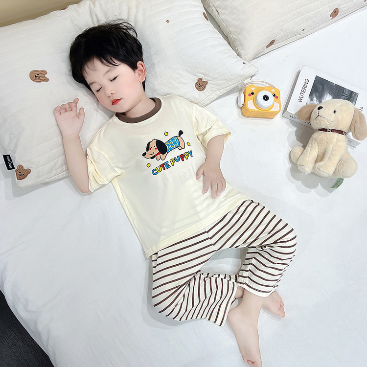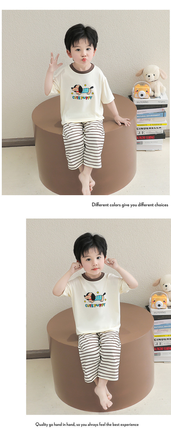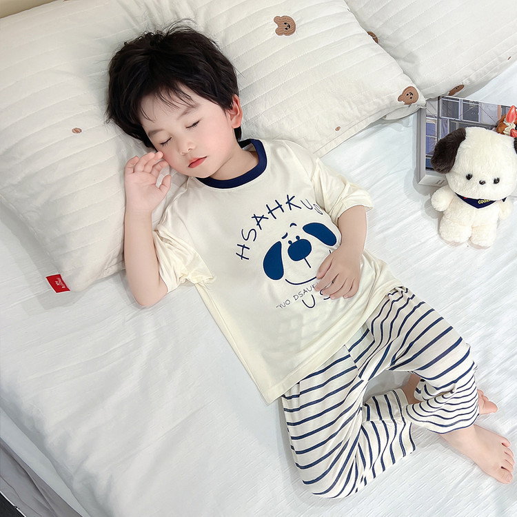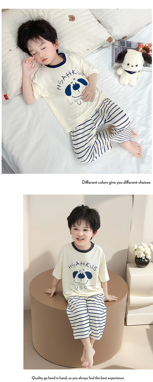 소년 아기 줄무늬 바지 세트 어린이 홈 옷을위한 여름 얇은 아이스 실크 모달 에어컨 의류스토어 가기