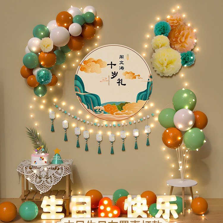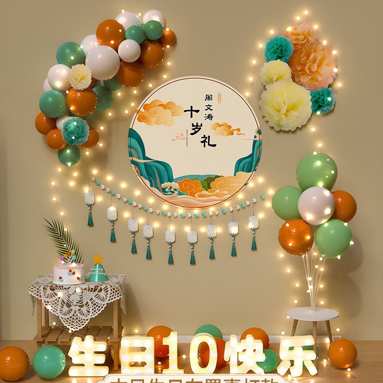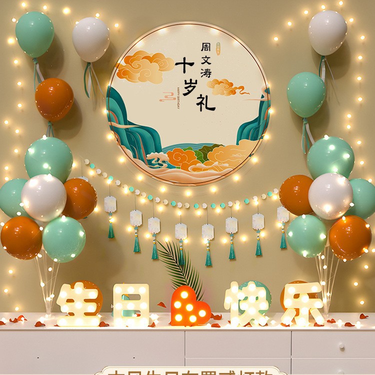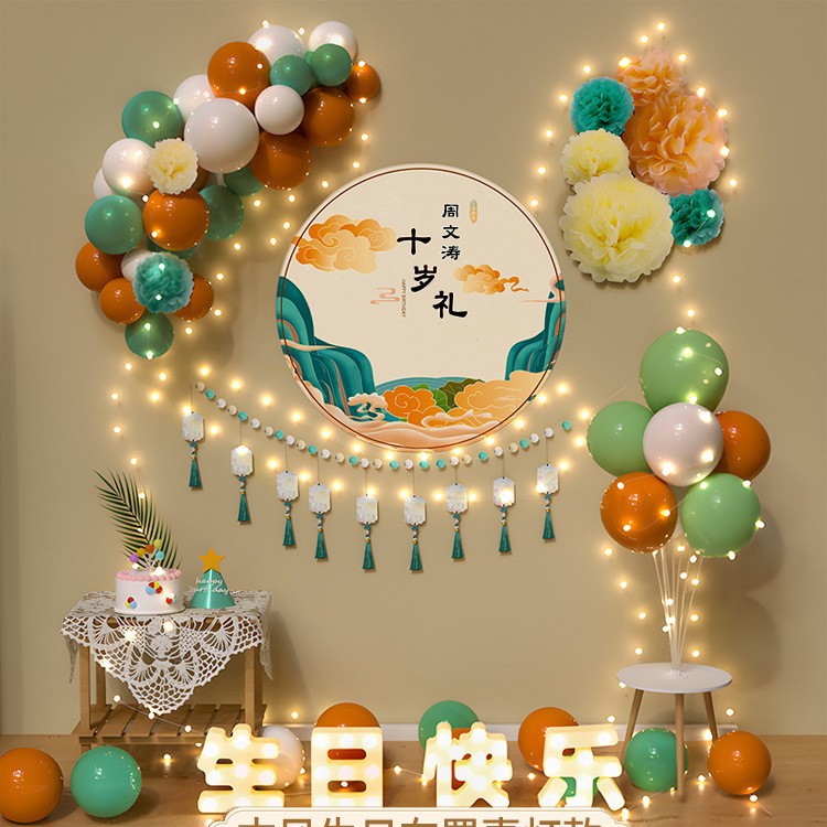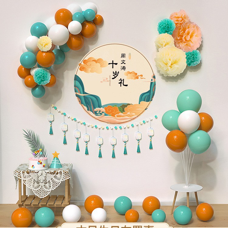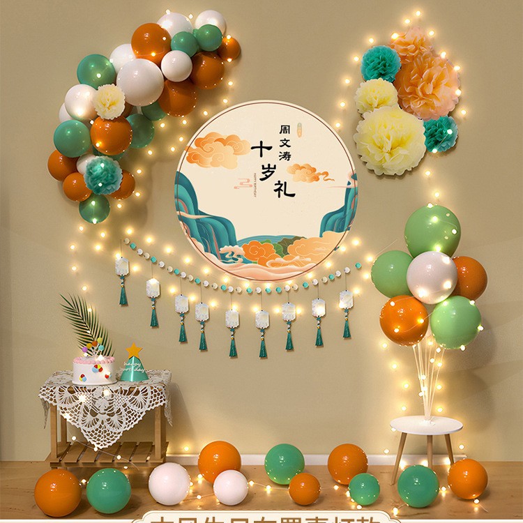 소녀, 소년 및 어린이를위한 새로운 중국 스타일 고대 스타일 생일 준비 10 세 해피 의식 장식 장면 풍선