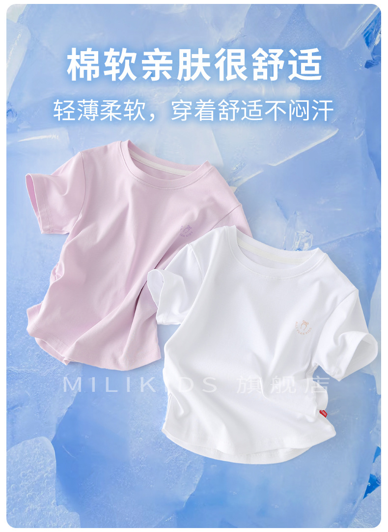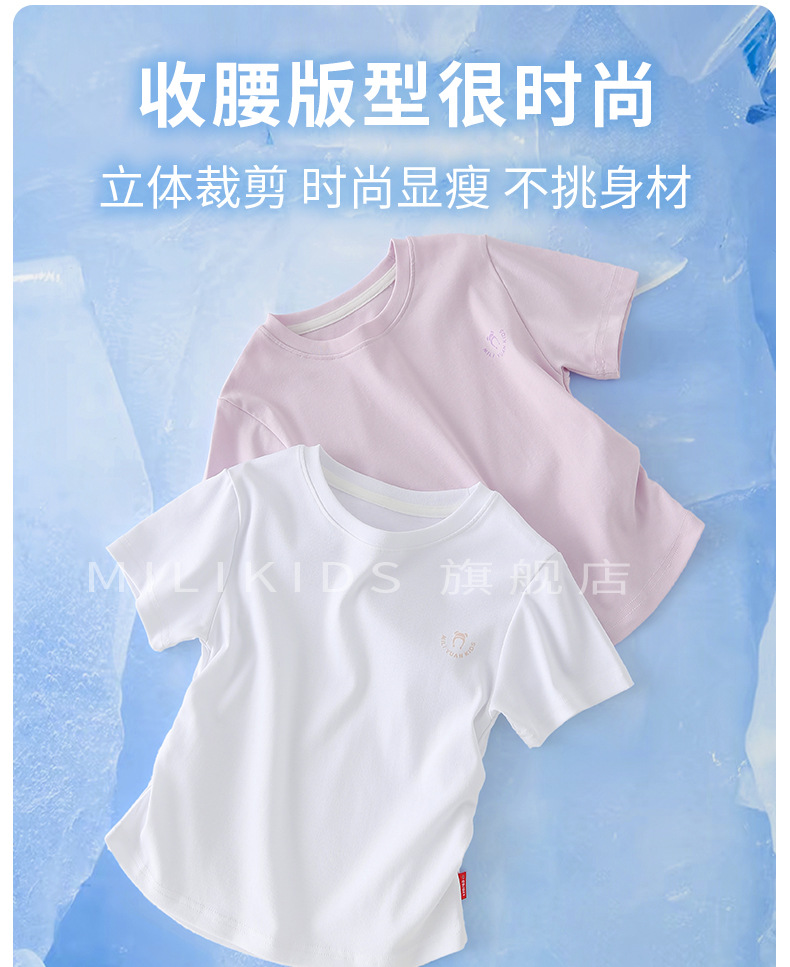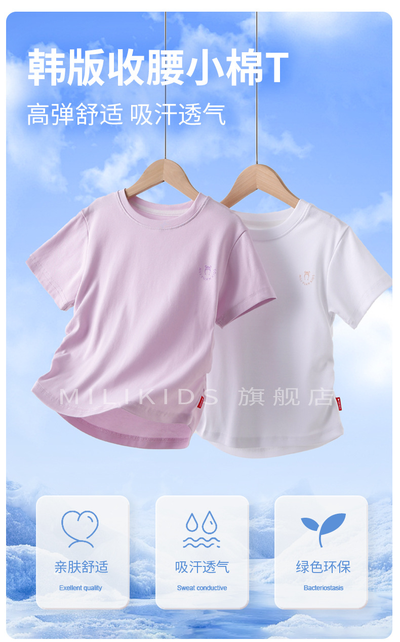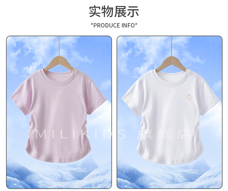 소녀 여름 반소매 코튼 티셔츠 어린이 여름 2025 새로운 스타일 얇은 타이트 허리 슬림 핏 탑 하프 슬리브 벨트스토어 가기