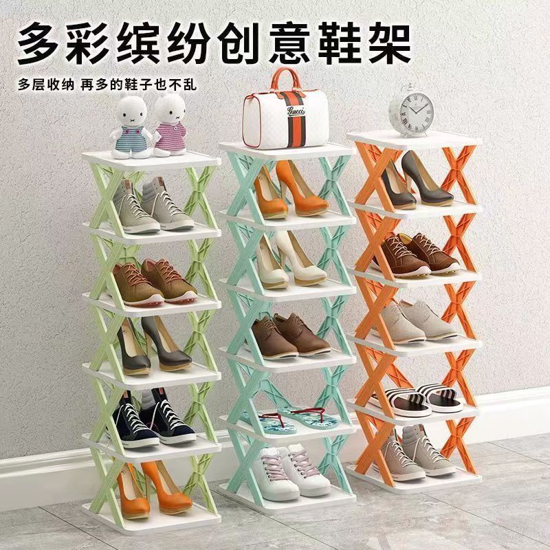 신발 랙 간단한 현관 가정용 신발 랙 다층 가정용 작은 기숙사 갭 신발 캐비닛 저장 인공물 공간 절약스토어 가기