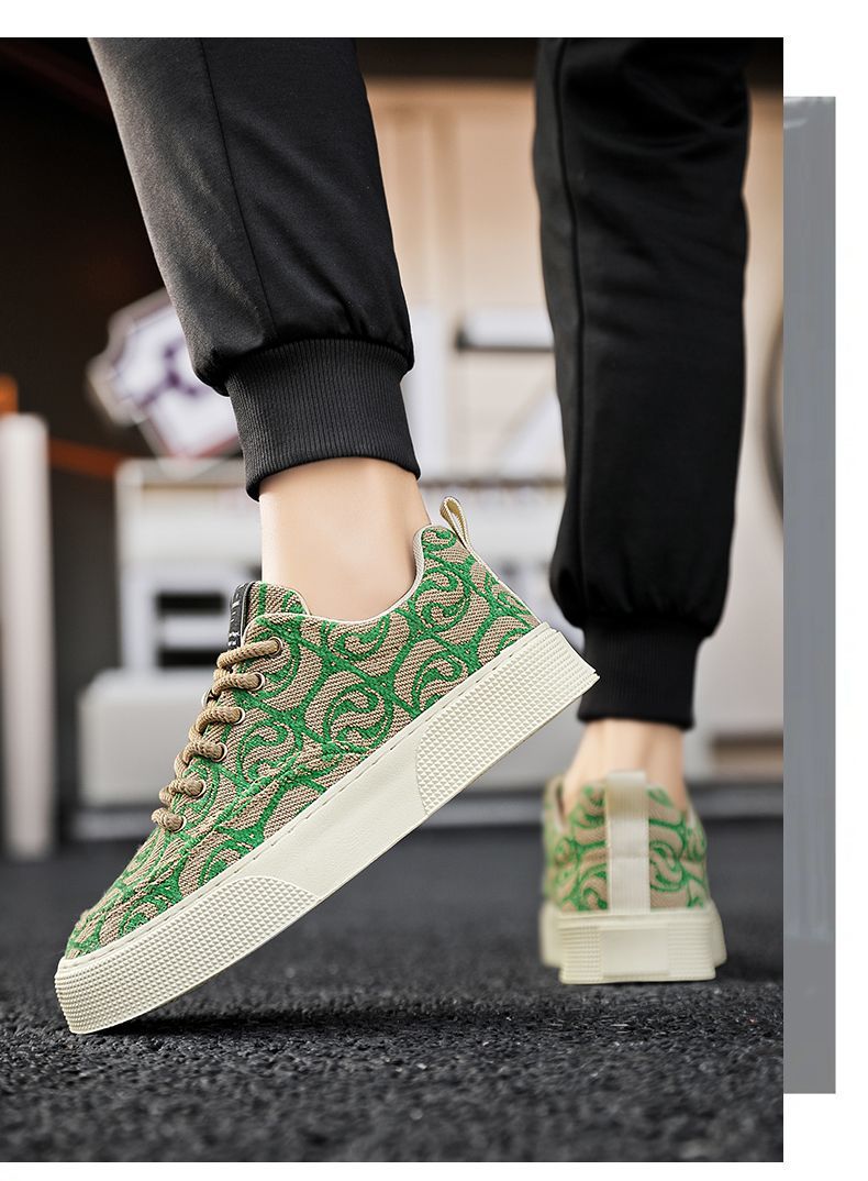 캔버스 신발 남성 로우 탑 여름 2025 새로운 틈새 로우 탑 프린트 스니커즈 남성 두꺼운 밑창 스포츠 및 레저 유행 신발스토어 가기