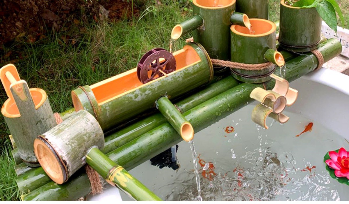 대나무통 수조, 물통, 돌통, 물순환, 여과분수, 태양광 산소증량 및 가습 장식품