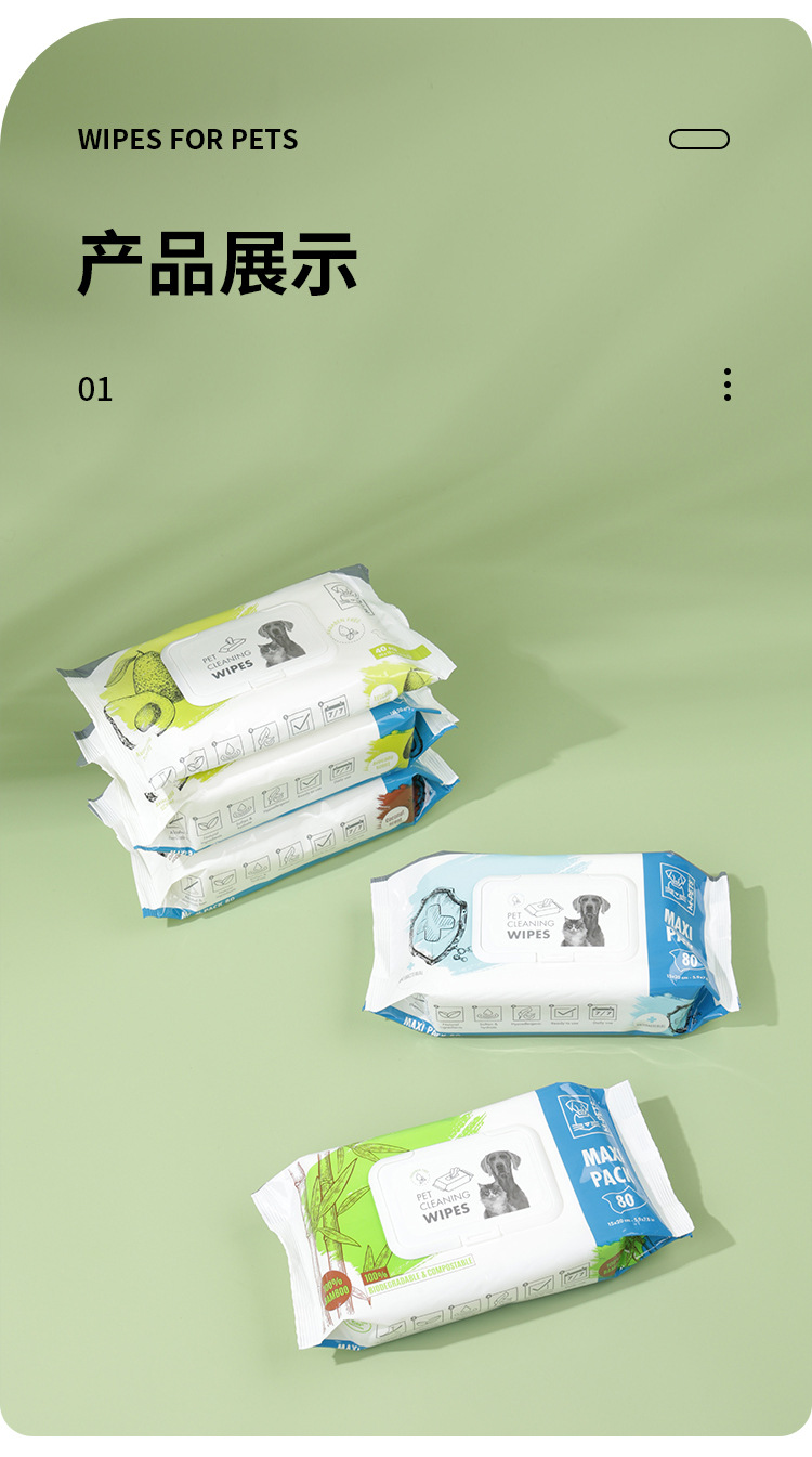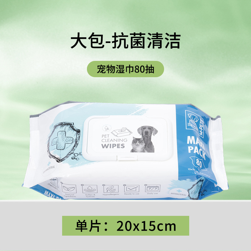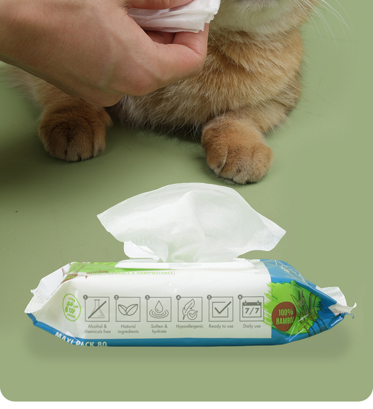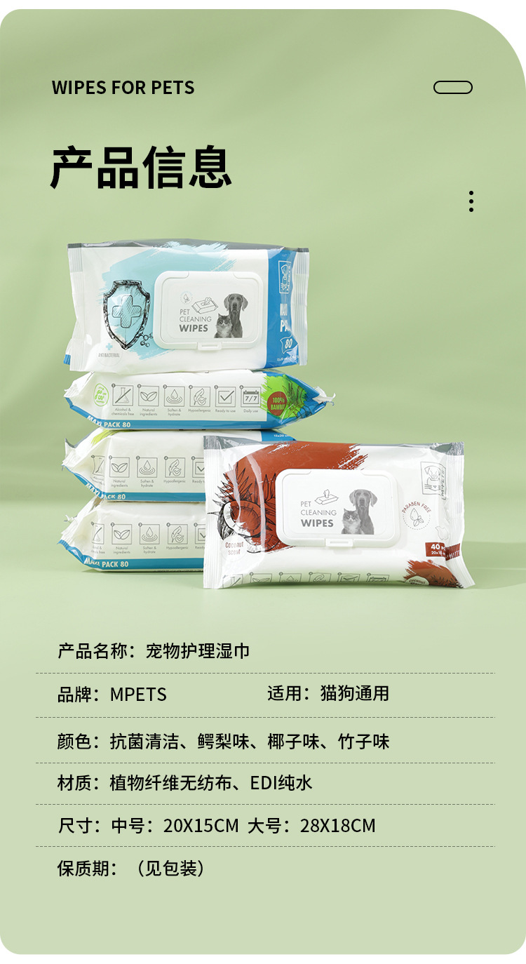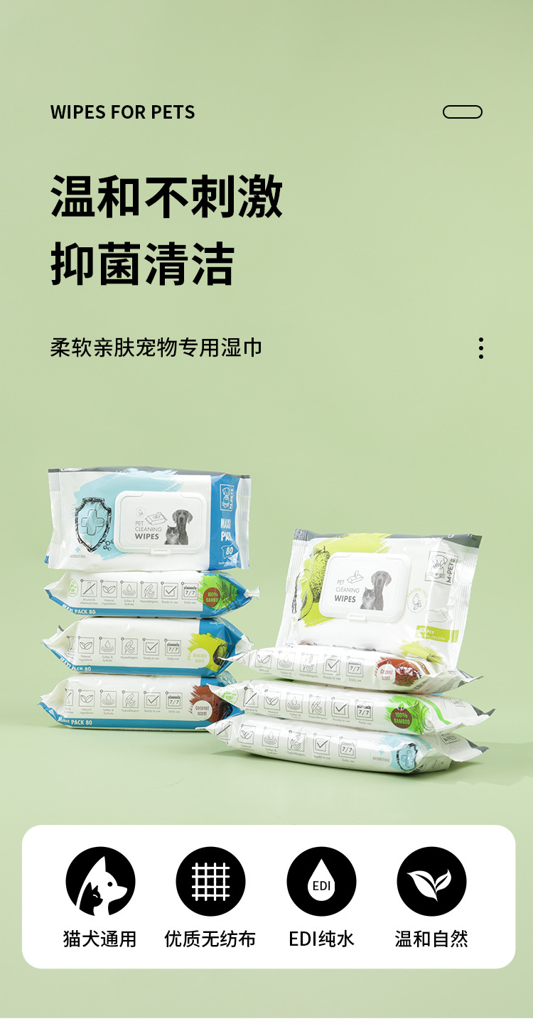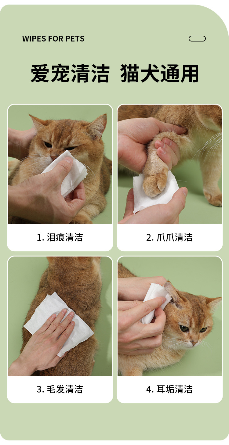 애완동물 물티슈 80매 고양이와 강아지를 위한 특수 물티슈 노워시 눈물 얼룩 청소용 바디용품 물티슈