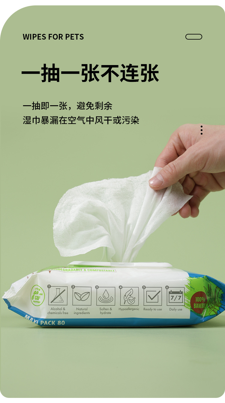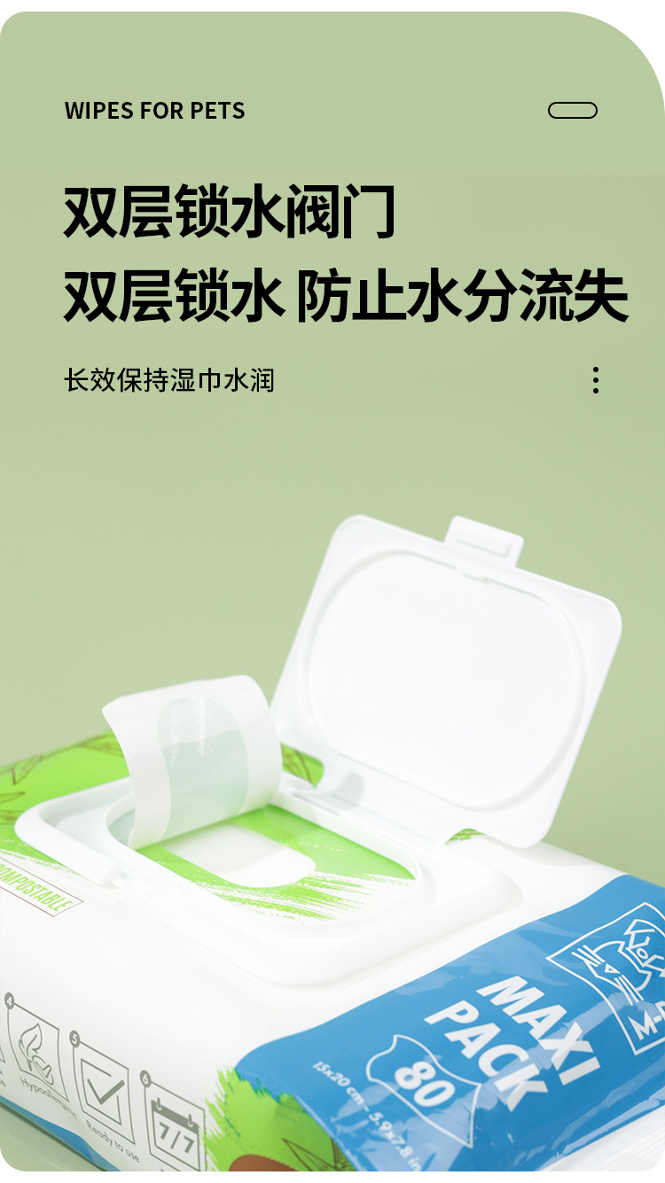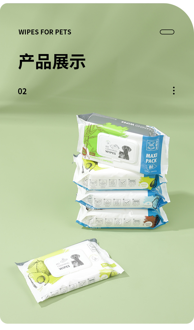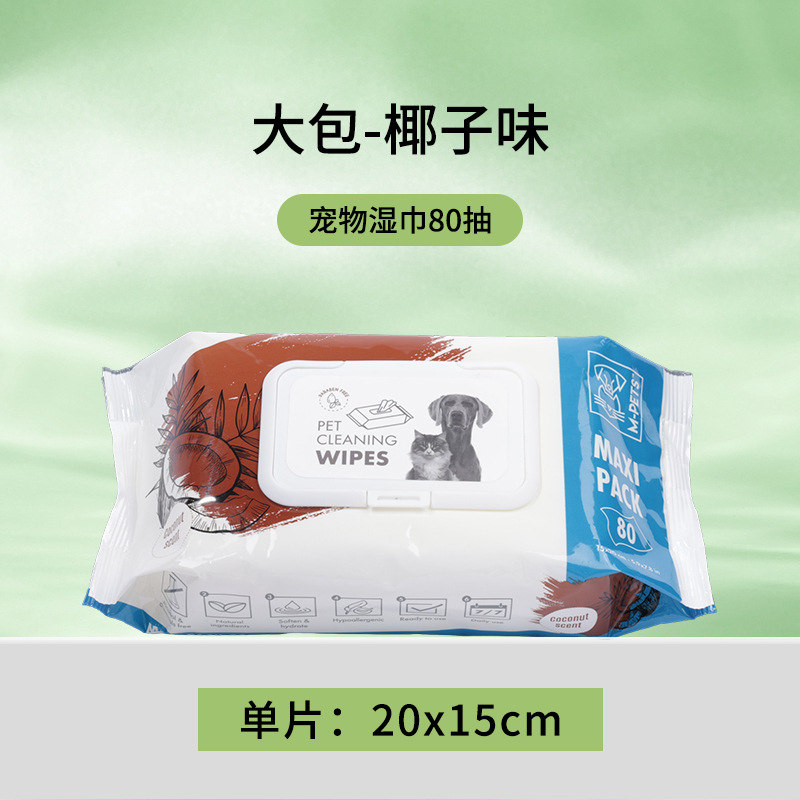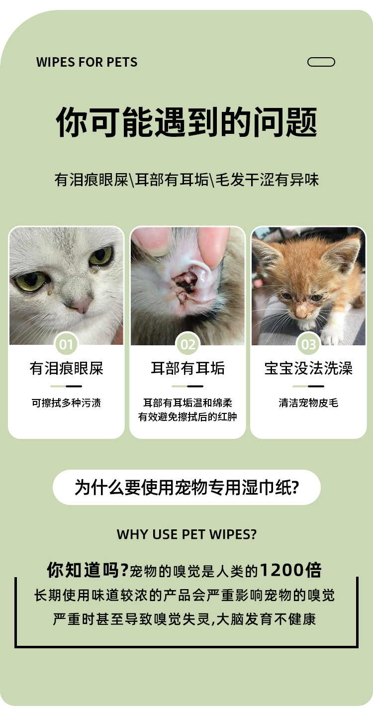 애완동물 물티슈 80매 고양이와 강아지를 위한 특수 물티슈 노워시 눈물 얼룩 청소용 바디용품 물티슈