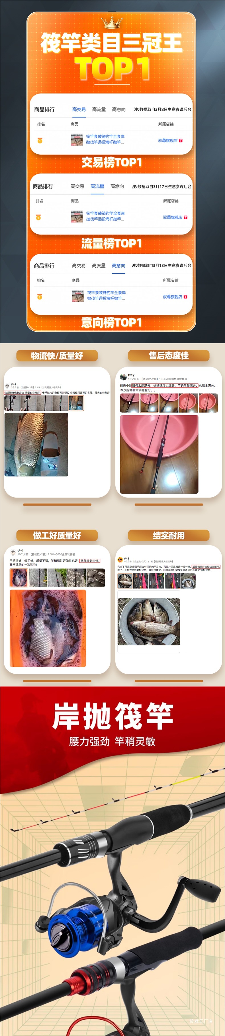 새로운 뗏목 세트 뗏목 낚싯대 전체 세트 해안 던지는 막대 긴 투척 바다 막대 부드러운 꼬리 작은 줄기 다리 낚싯대스토어 가기