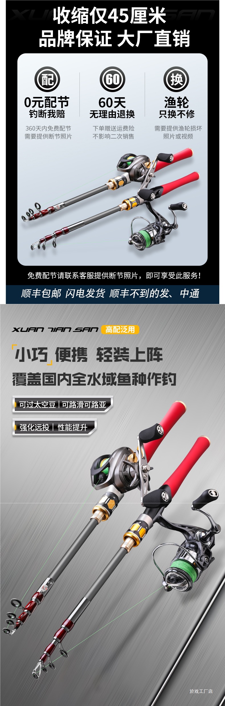 Dawa 수축 Luya Pole 새로운 휴대용 텔레스코픽 건 핸들 드롭 휠 스트레이트 핸들 회전 휠 진동 유형의 전체 세트스토어 가기