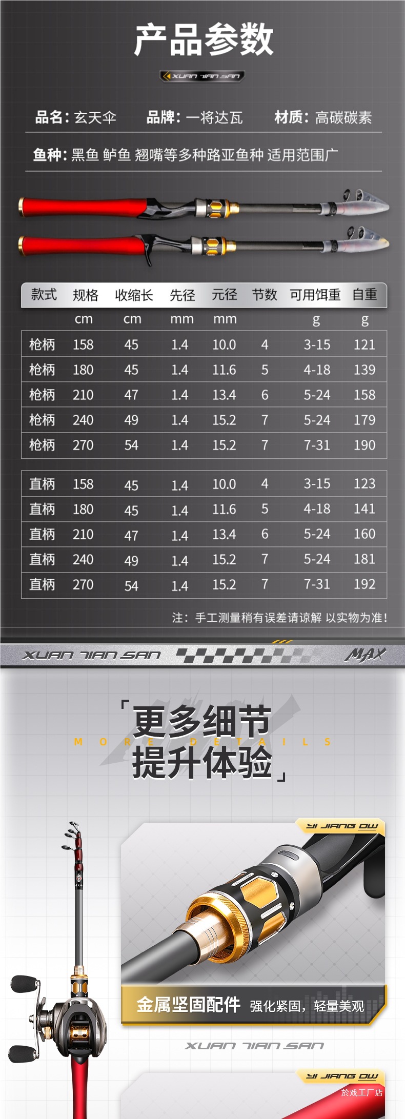 • 2.1m [싱글 스트레이트 핸들] 단일 로드 1개