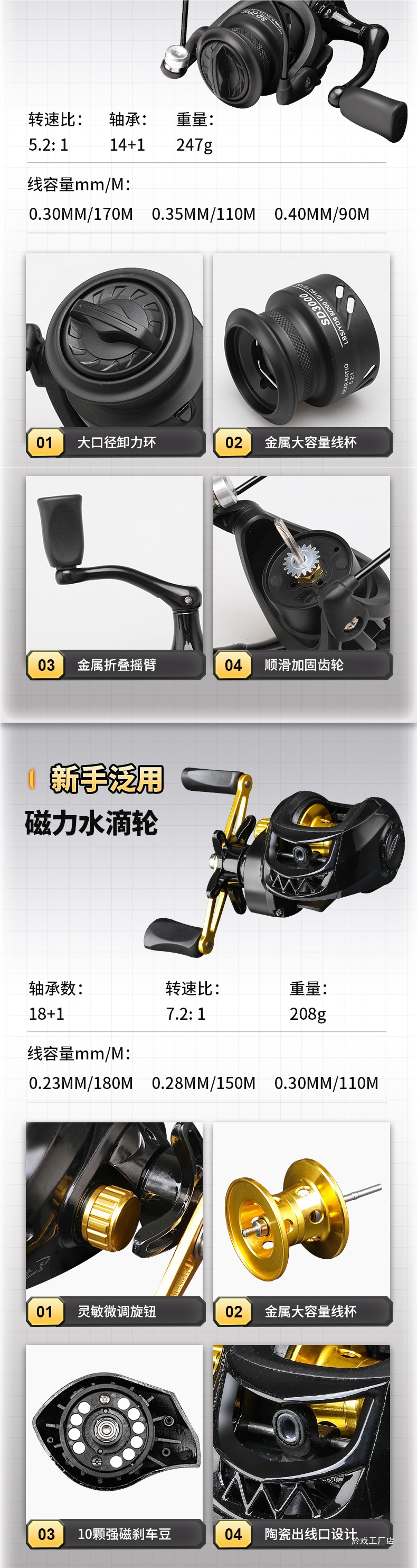 Dawa 수축 Luya Pole 새로운 휴대용 텔레스코픽 건 핸들 드롭 휠 스트레이트 핸들 회전 휠 진동 유형의 전체 세트