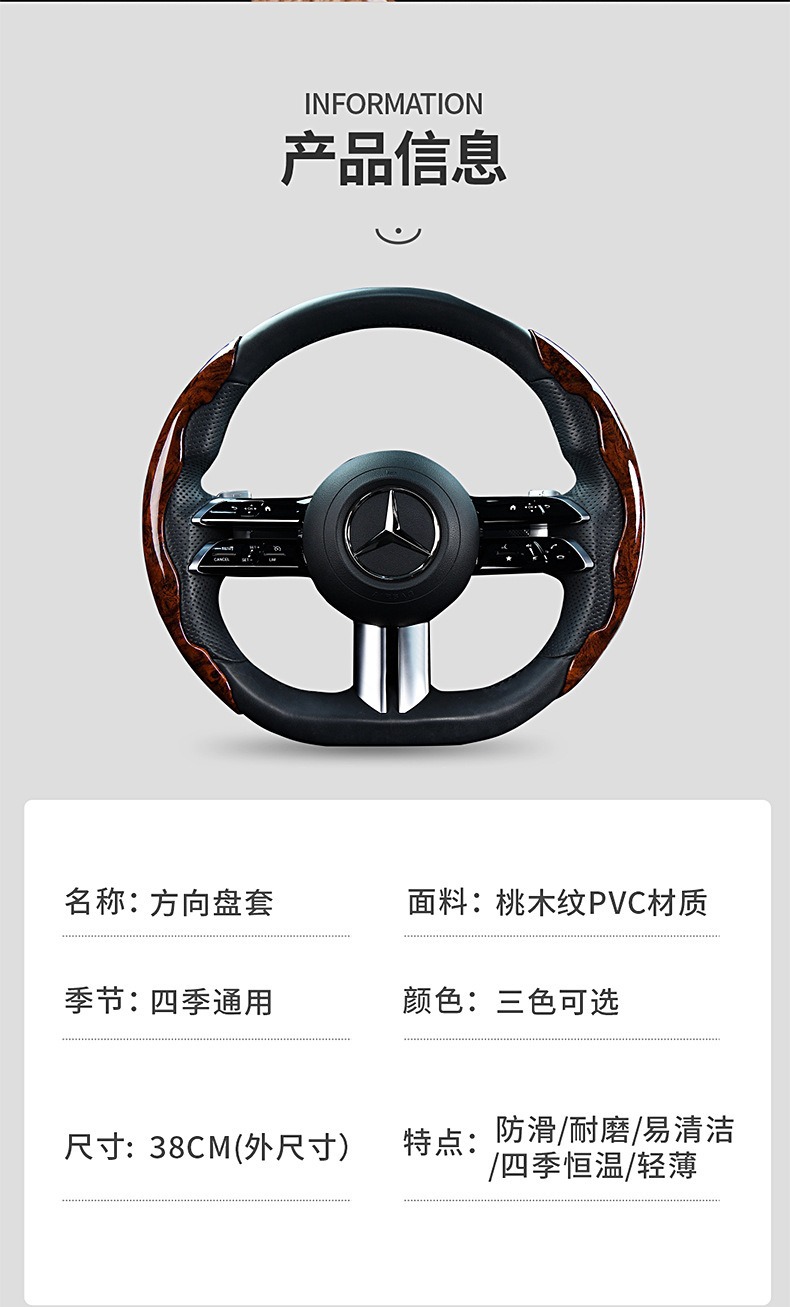 자동차 백단 나뭇결 스티어링 휠 커버, 초박형, 사계절 범용, 미끄럼 방지, 인터넷 연예인 하프 세트, 남성용 카세트 장식 핸들 커버스토어 가기
