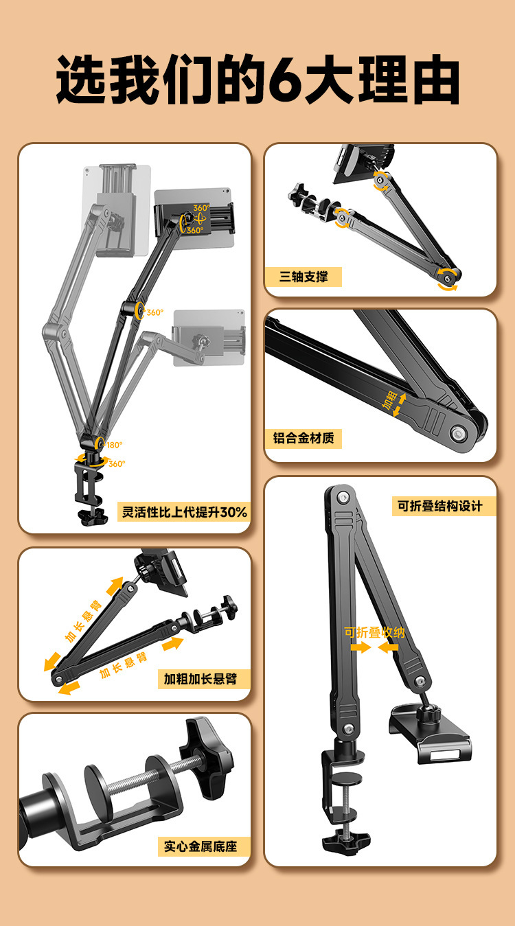 모든 금속 캔틸레버 게으른 오버헤드 휴대 전화 홀더 데스크탑 라이브 방송 침대 옆 리프팅 태블릿 클립 iPad 홀더에 적합