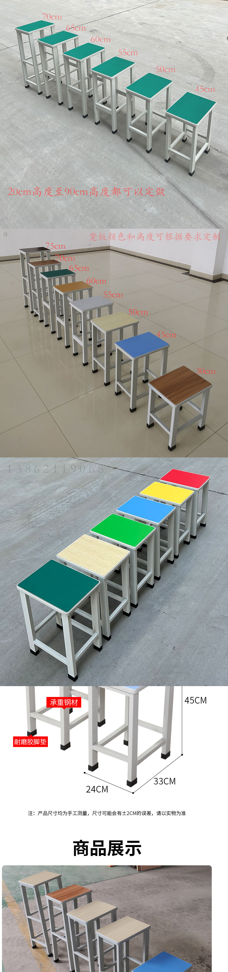 두꺼운 조립 라인 사각 스툴, 정전기 방지 작업 스툴, 병원 스툴, 학교 학생 스툴, 작업장 높고 낮은 스툴스토어 가기