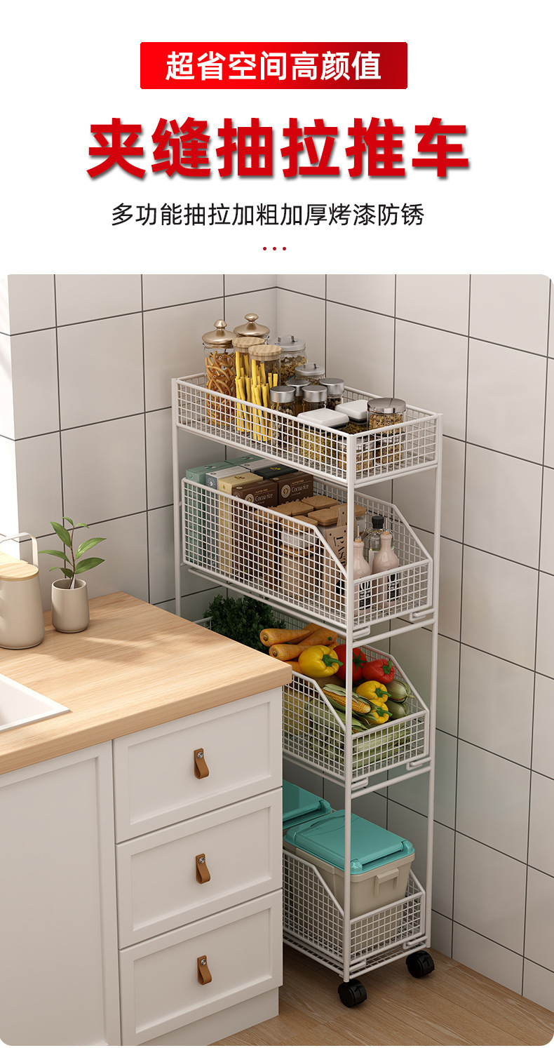 주방용 틈새수납선반, 서랍형 조미료병, 이동식 다기능 수납선반