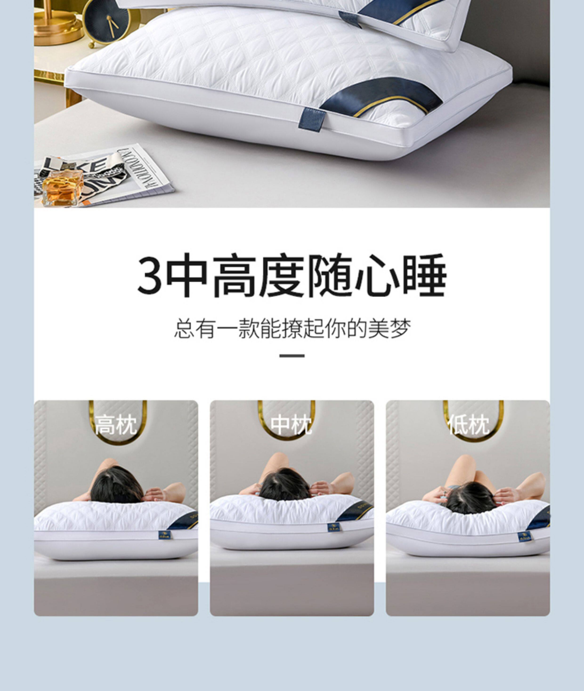5 성급 호텔 베개 베개 코어 한 쌍의 가정용 성인 단일 목 보호 깃털 벨벳 높은 리바운드 베개 도매