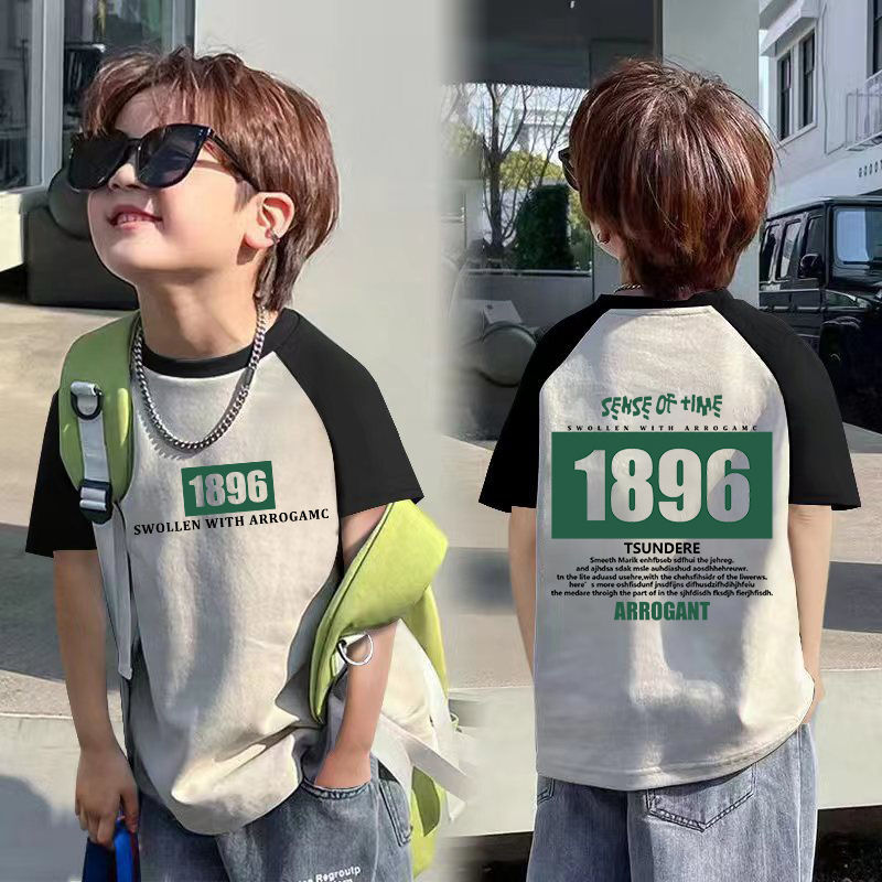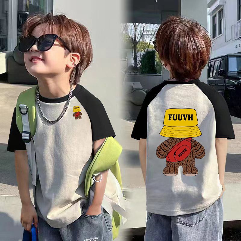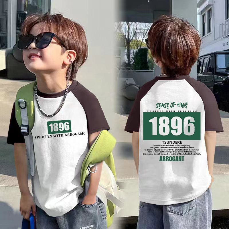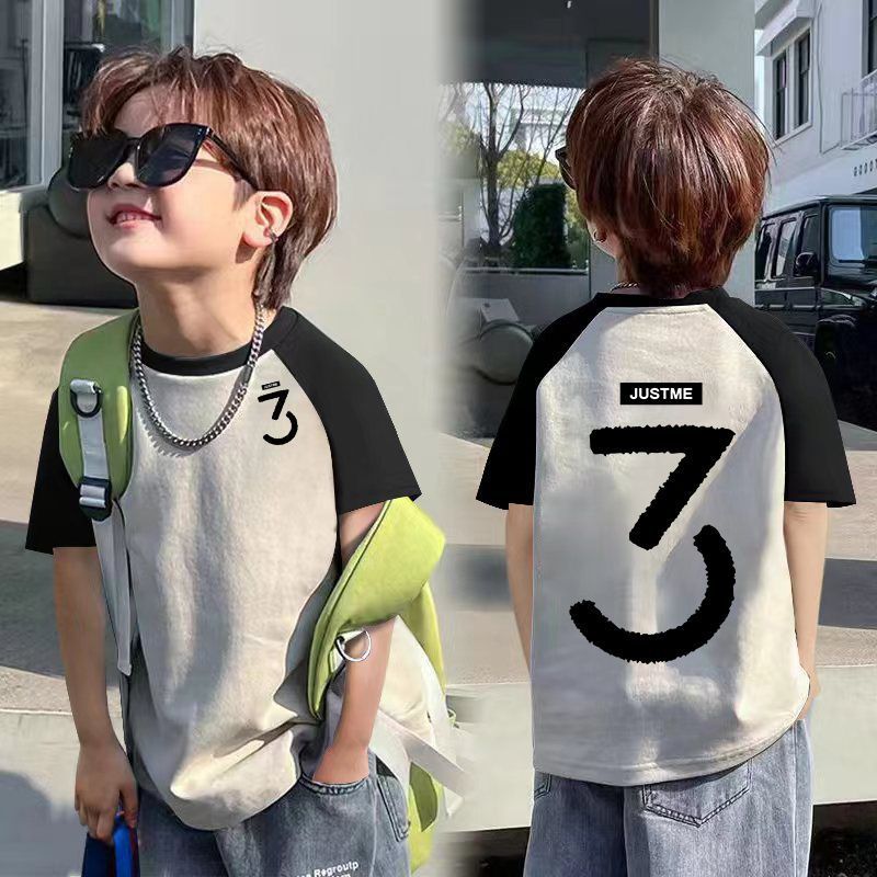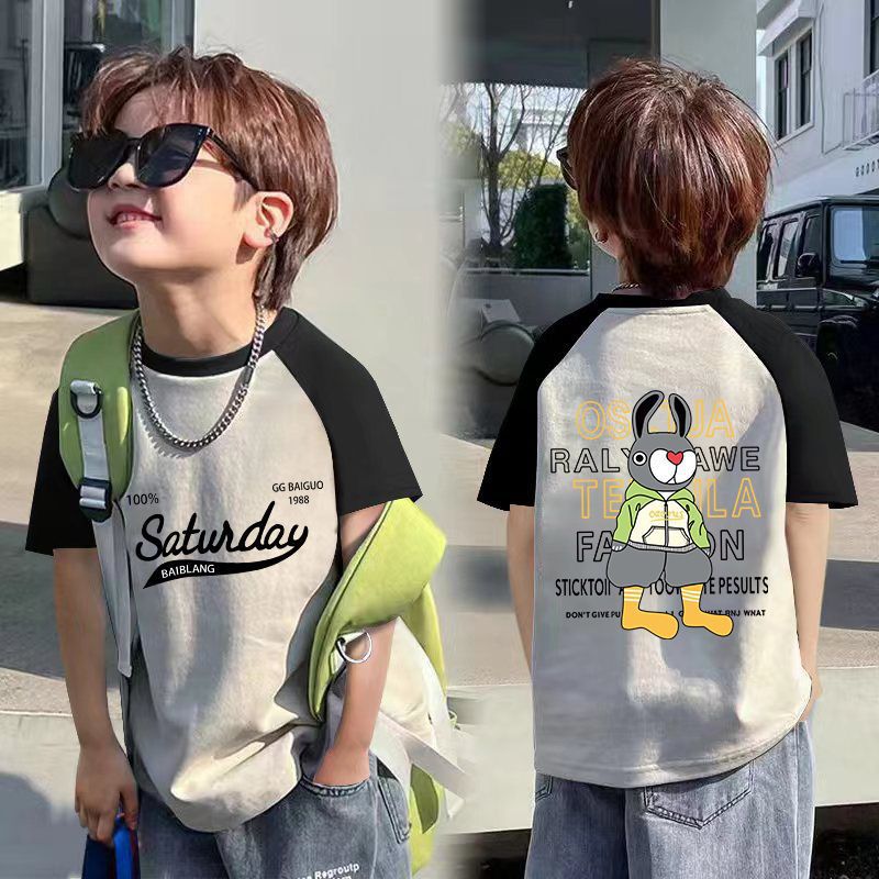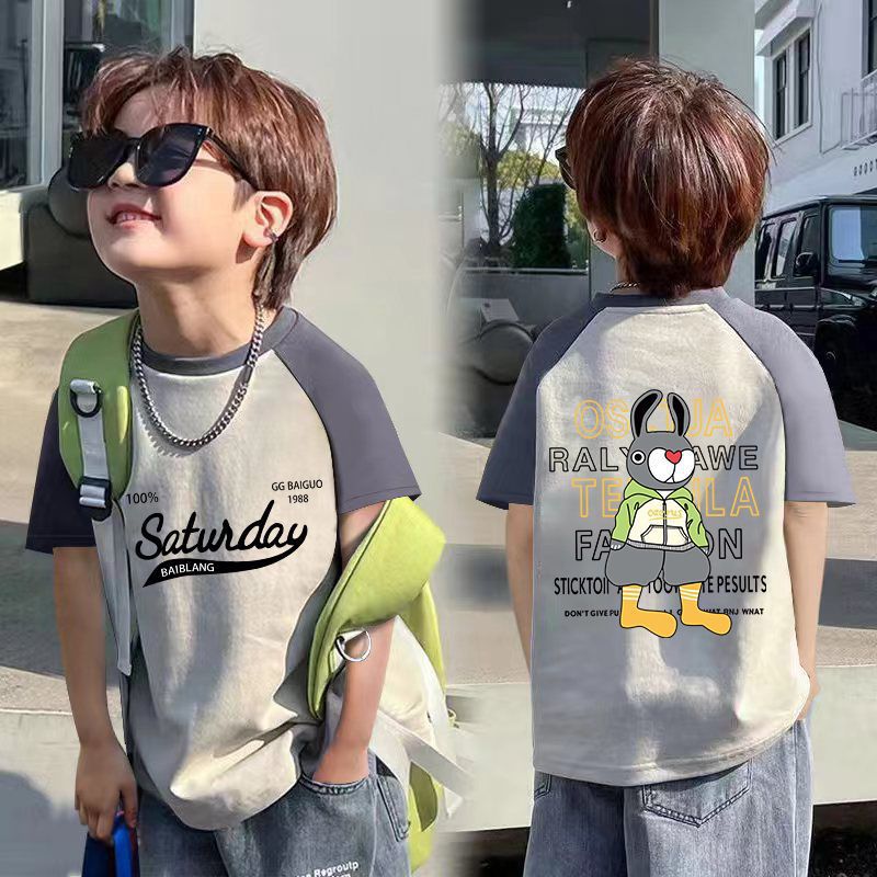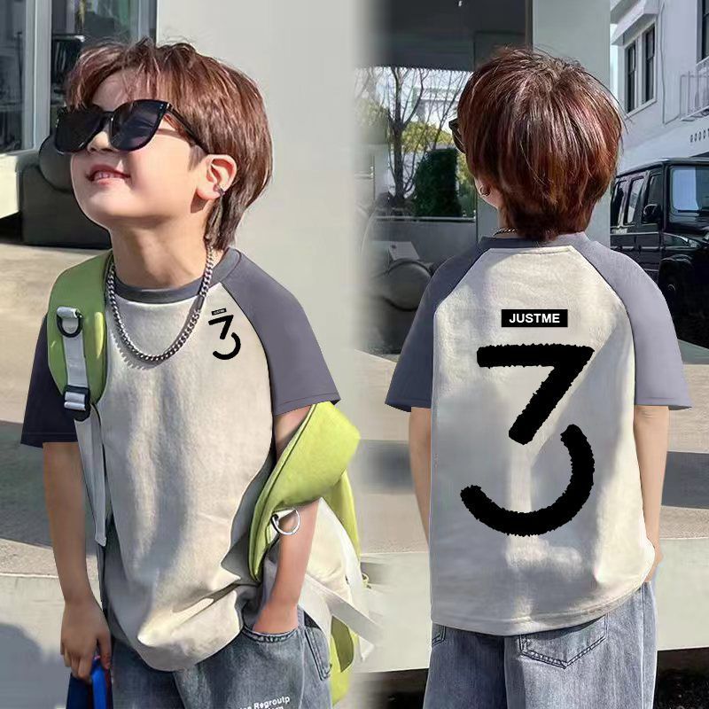 새로운 코튼 티셔츠 어깨 컬러 블록 반팔 소년 여름 한국식 유행 유행 유행 유행 소년스토어 가기