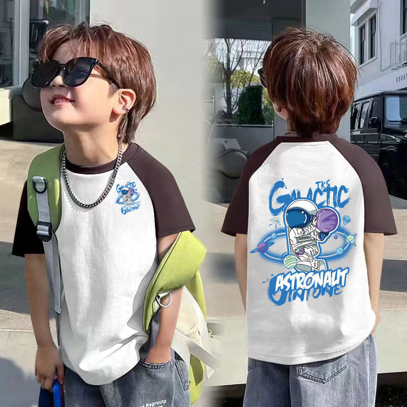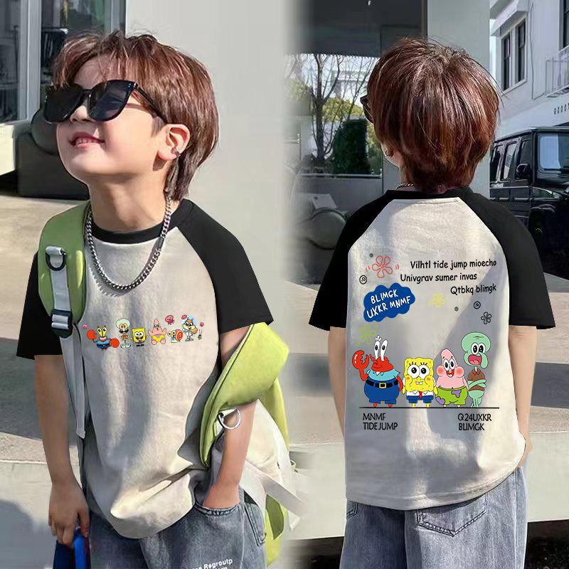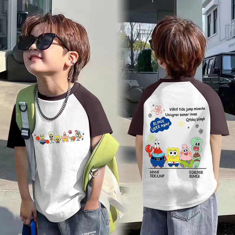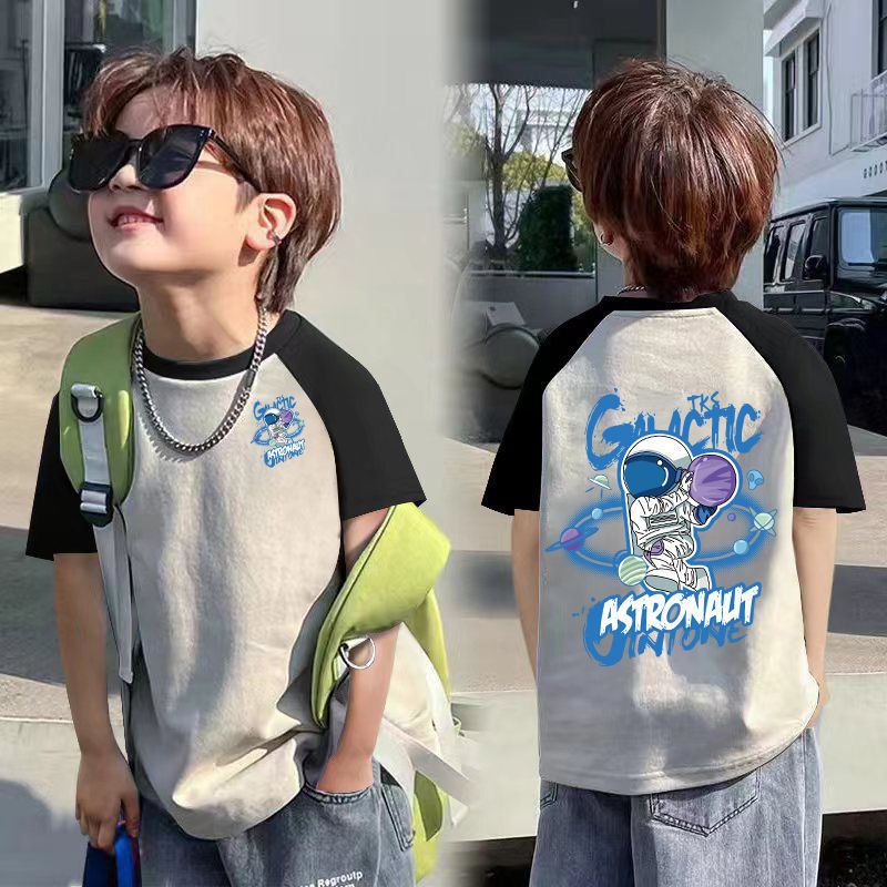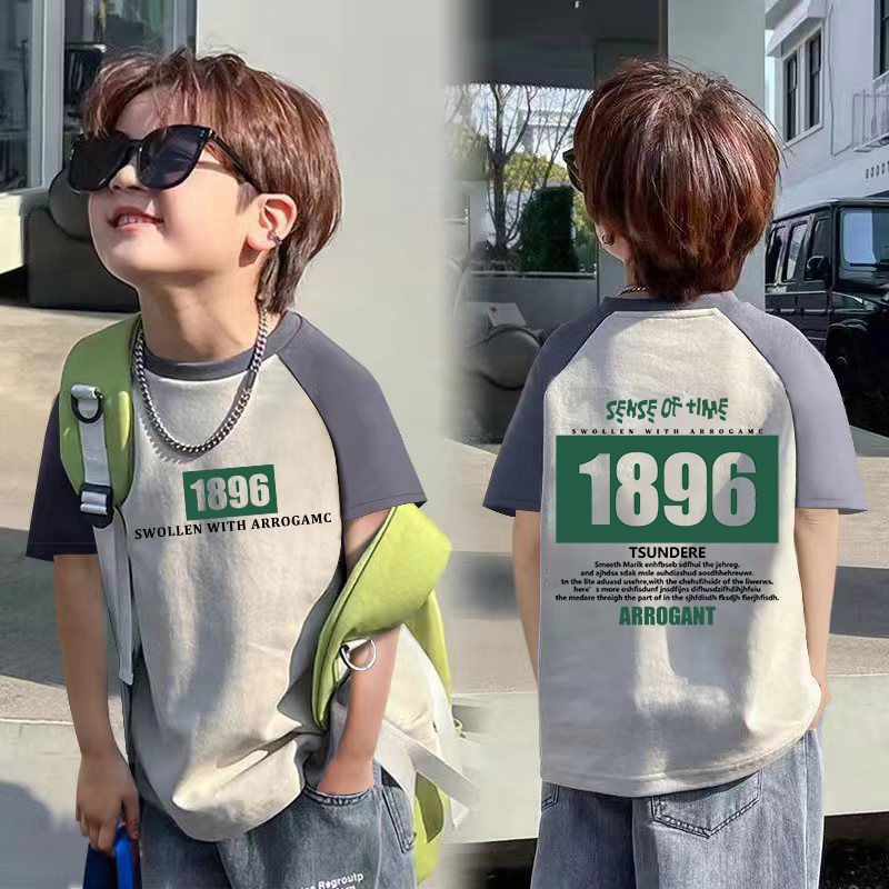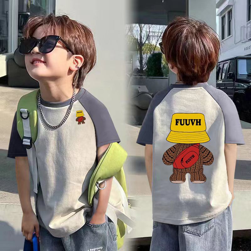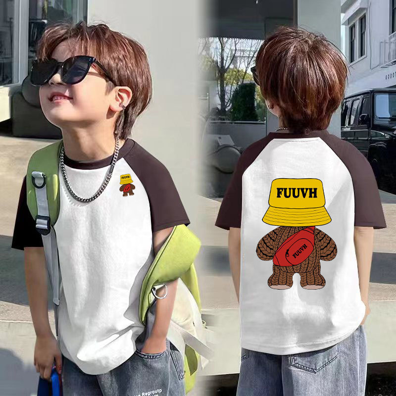새로운 코튼 티셔츠 어깨 컬러 블록 반팔 소년 여름 한국식 유행 유행 유행 유행 소년스토어 가기