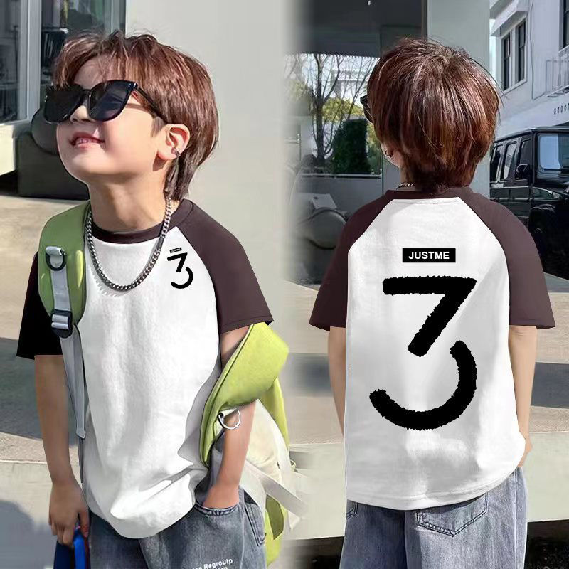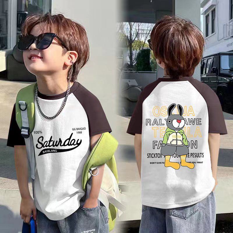 새로운 코튼 티셔츠 어깨 컬러 블록 반팔 소년 여름 한국식 유행 유행 유행 유행 소년