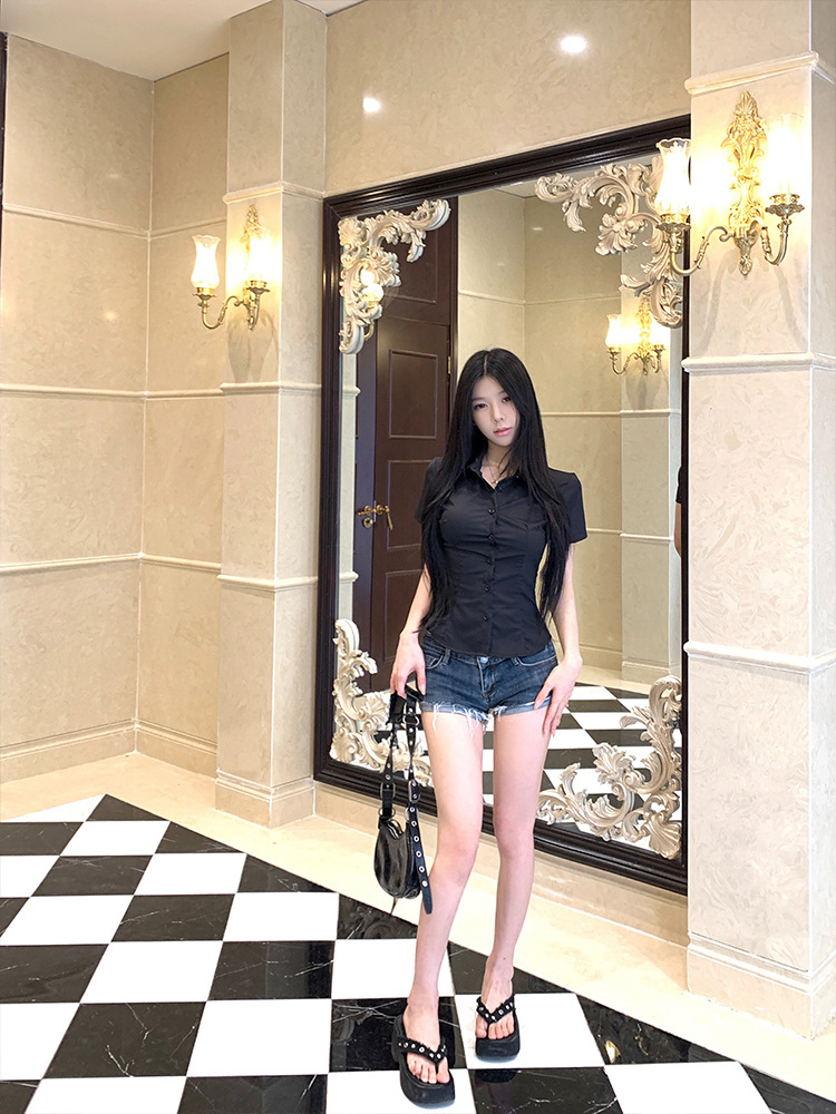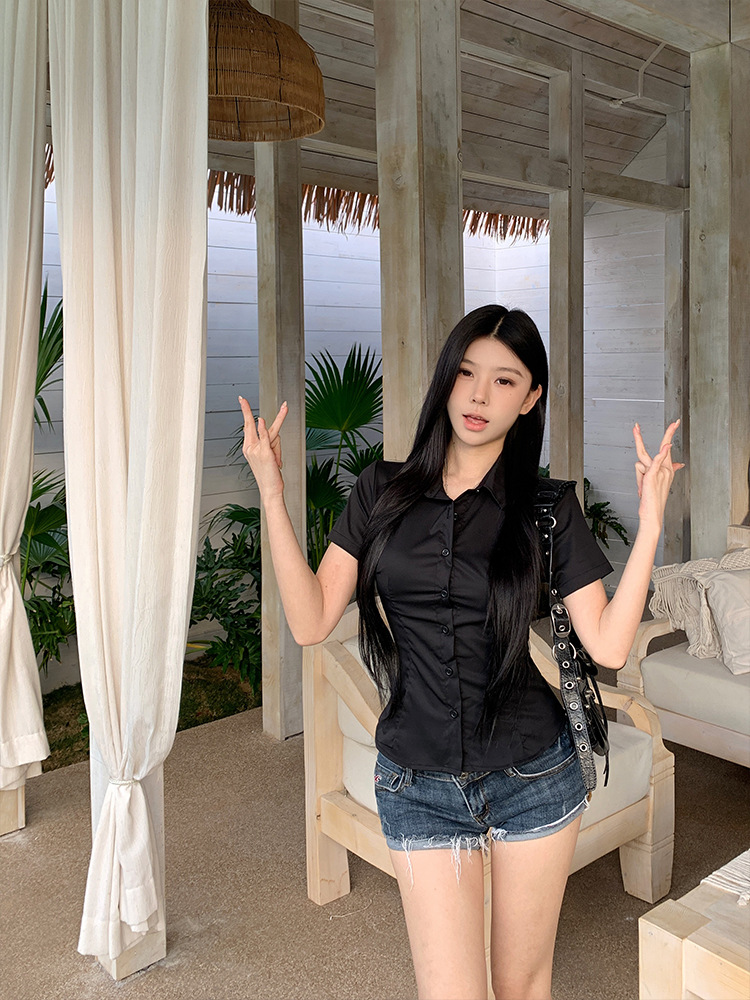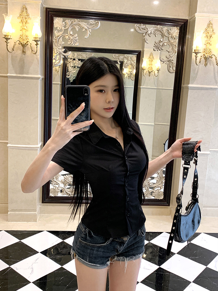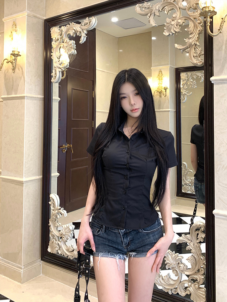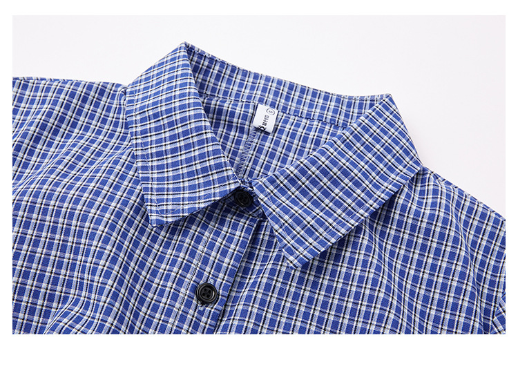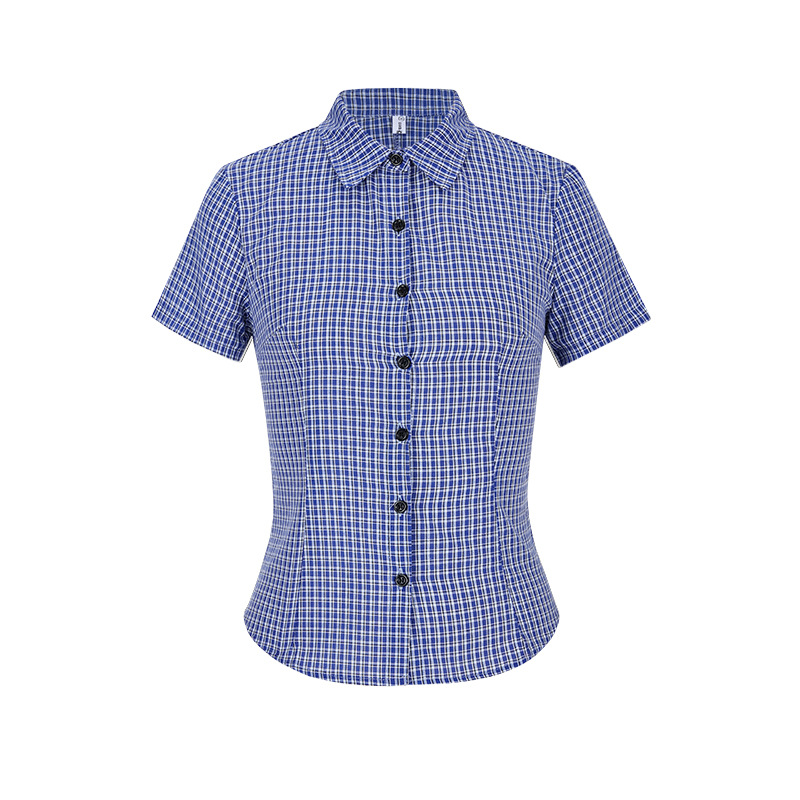 한국식 셔츠 슬림핏 슬림핏 짧은 격자 무늬 여성용 반팔 셔츠스토어 가기