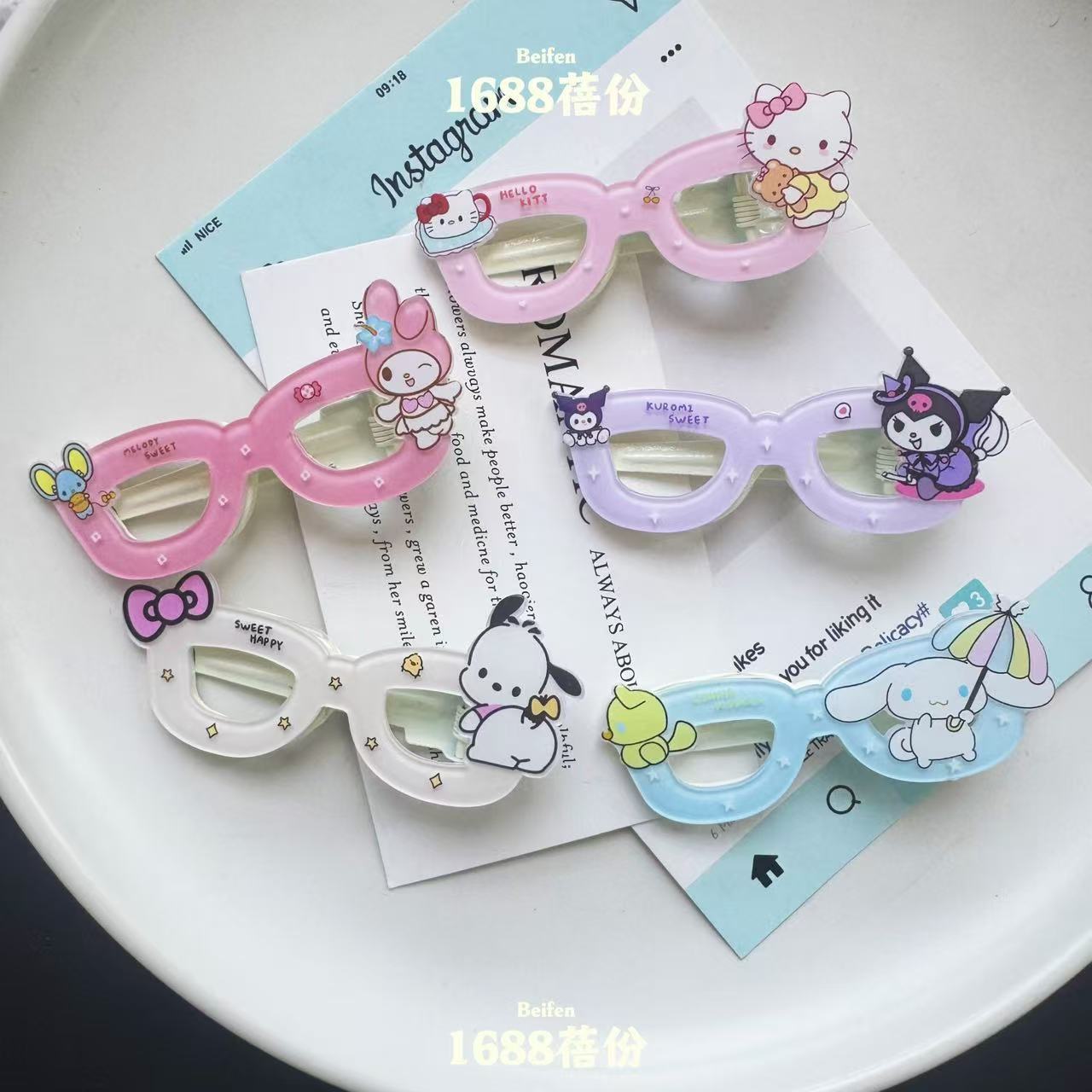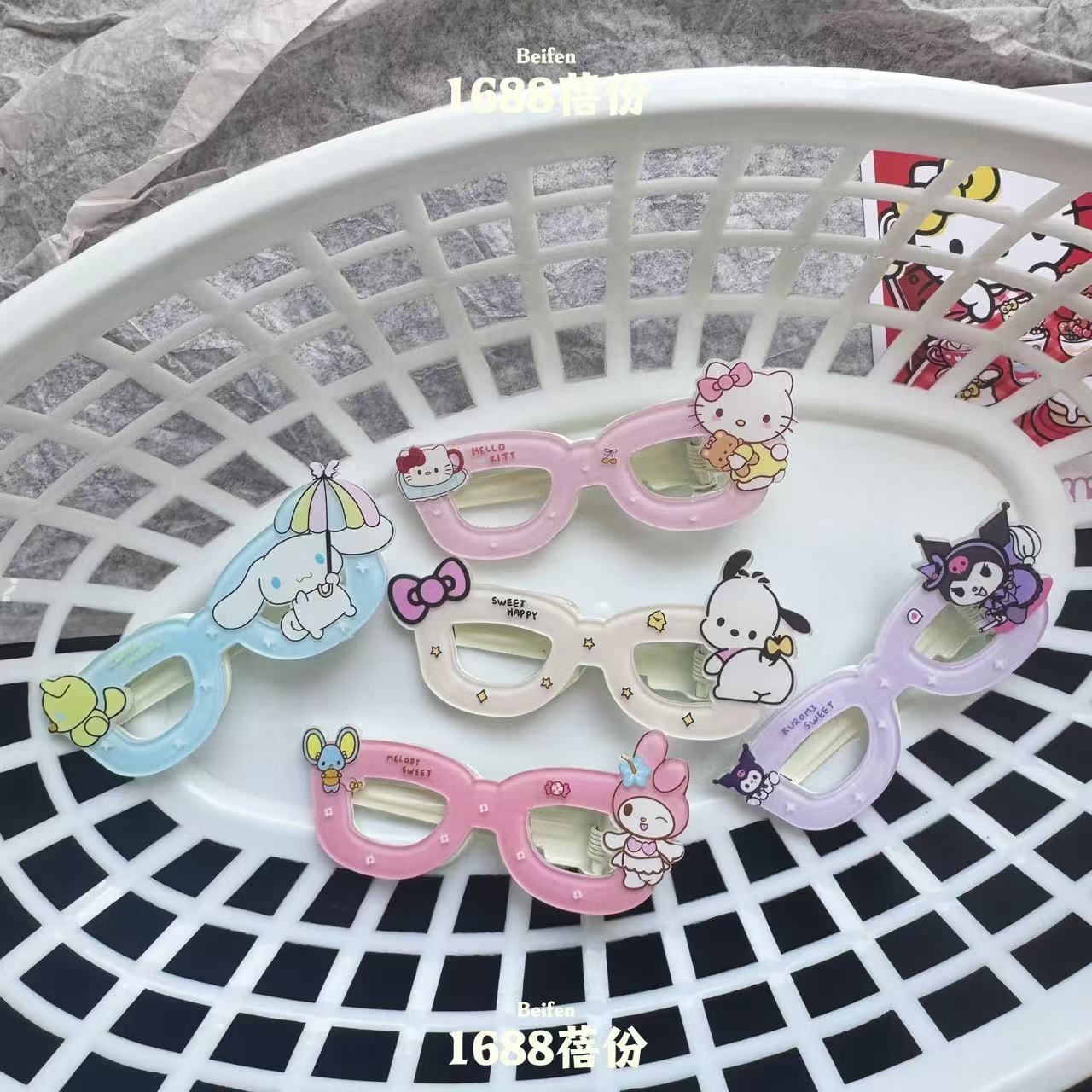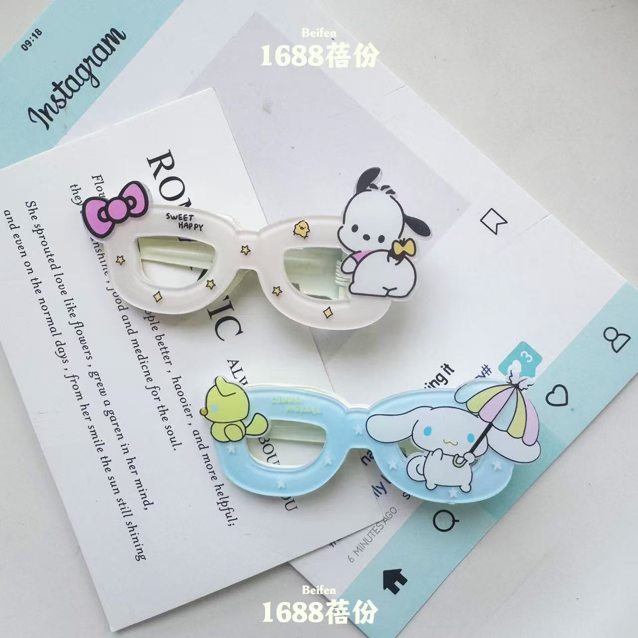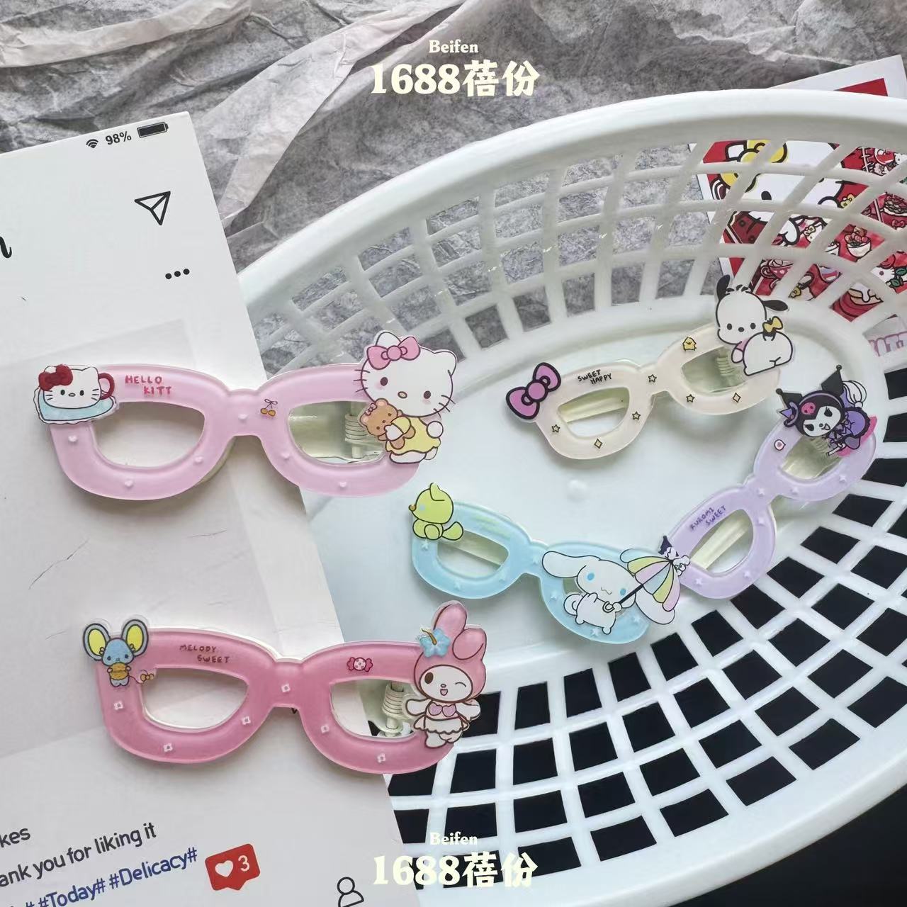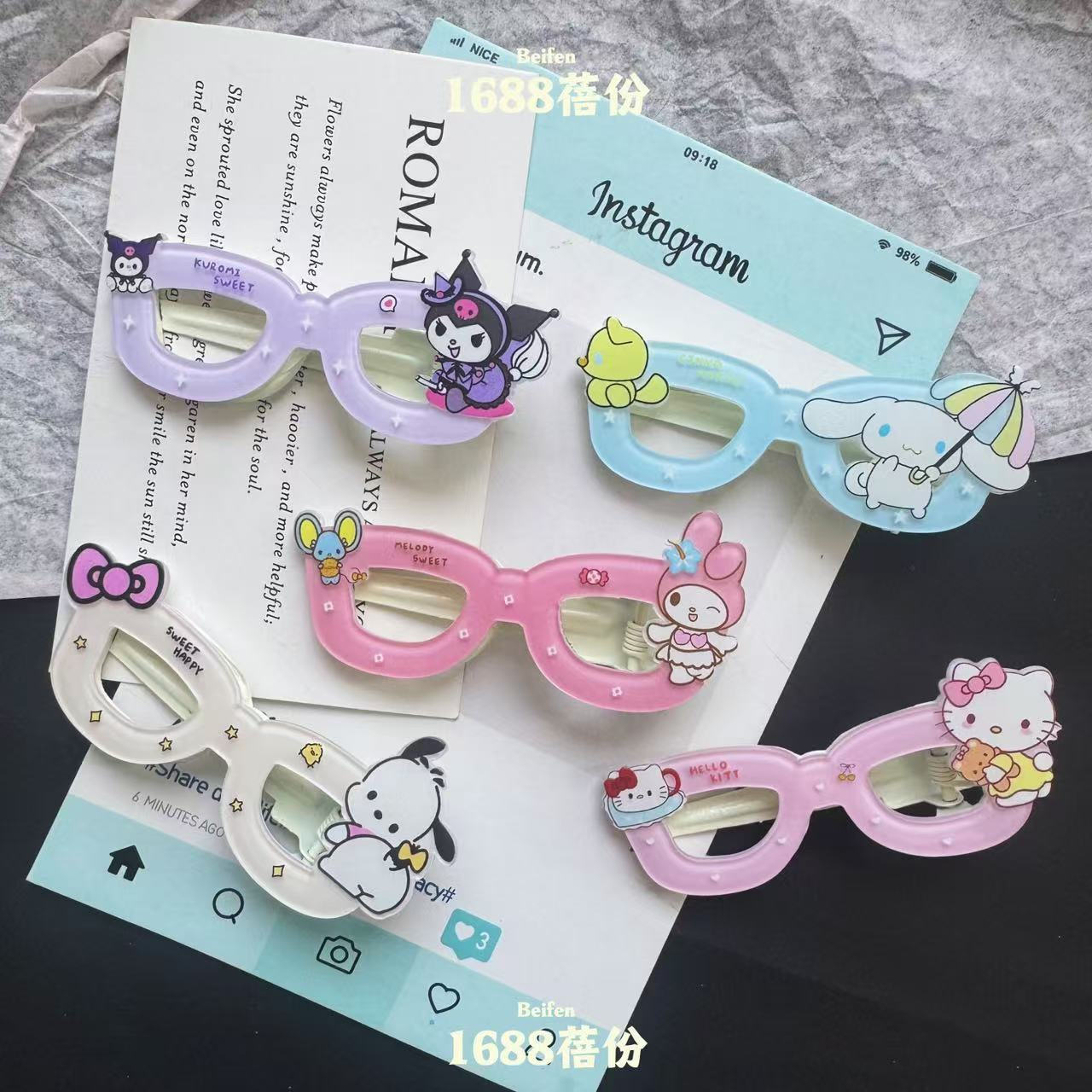 귀여운 만화 산리오 안경 헤어핀 달콤한 소녀 하트 뱅 덕빌 클립 헤어핀 올매치 학생 헤어 액세서리