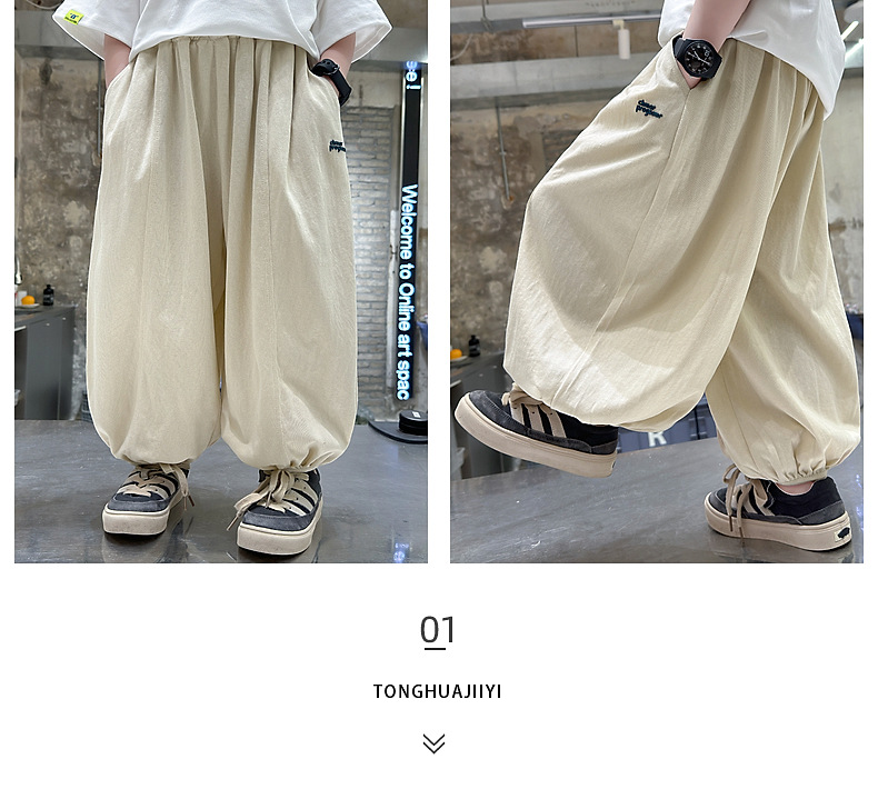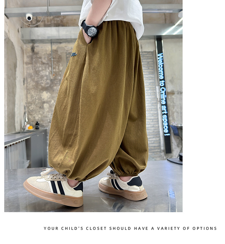 소년 모기 방지 바지 여름 착용 2025 새로운 어린이 여름 얇은 느슨한 스포츠 바지 소년 스트리트 캐주얼 바지스토어 가기