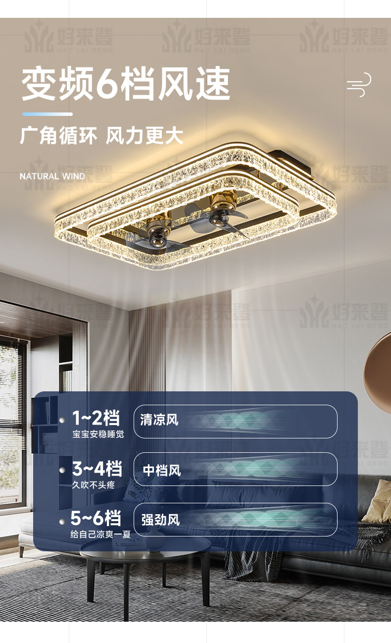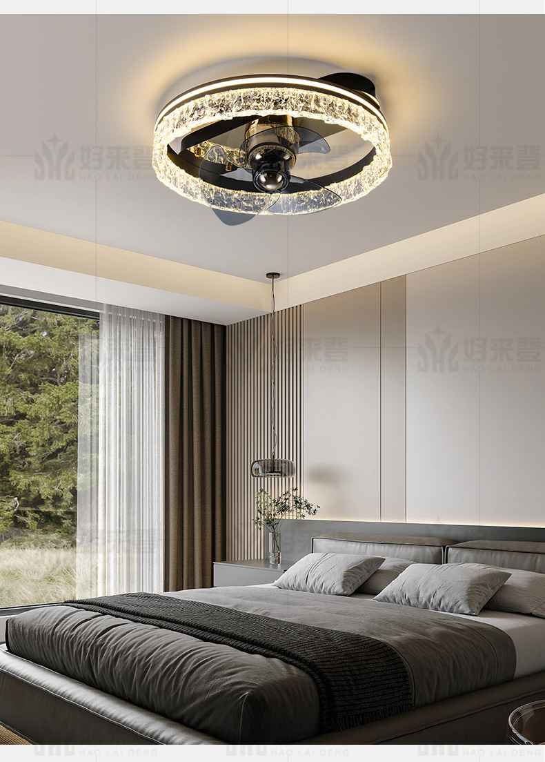 현대 빛 럭셔리 교수형 팬 램프 거실 천장 램프 전체 스펙트럼 대기 얼음 균열 교수형 팬 램프 통합 침실 램프