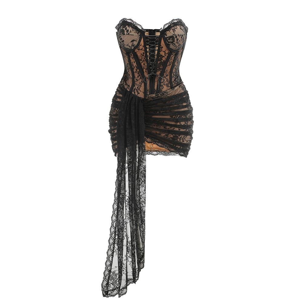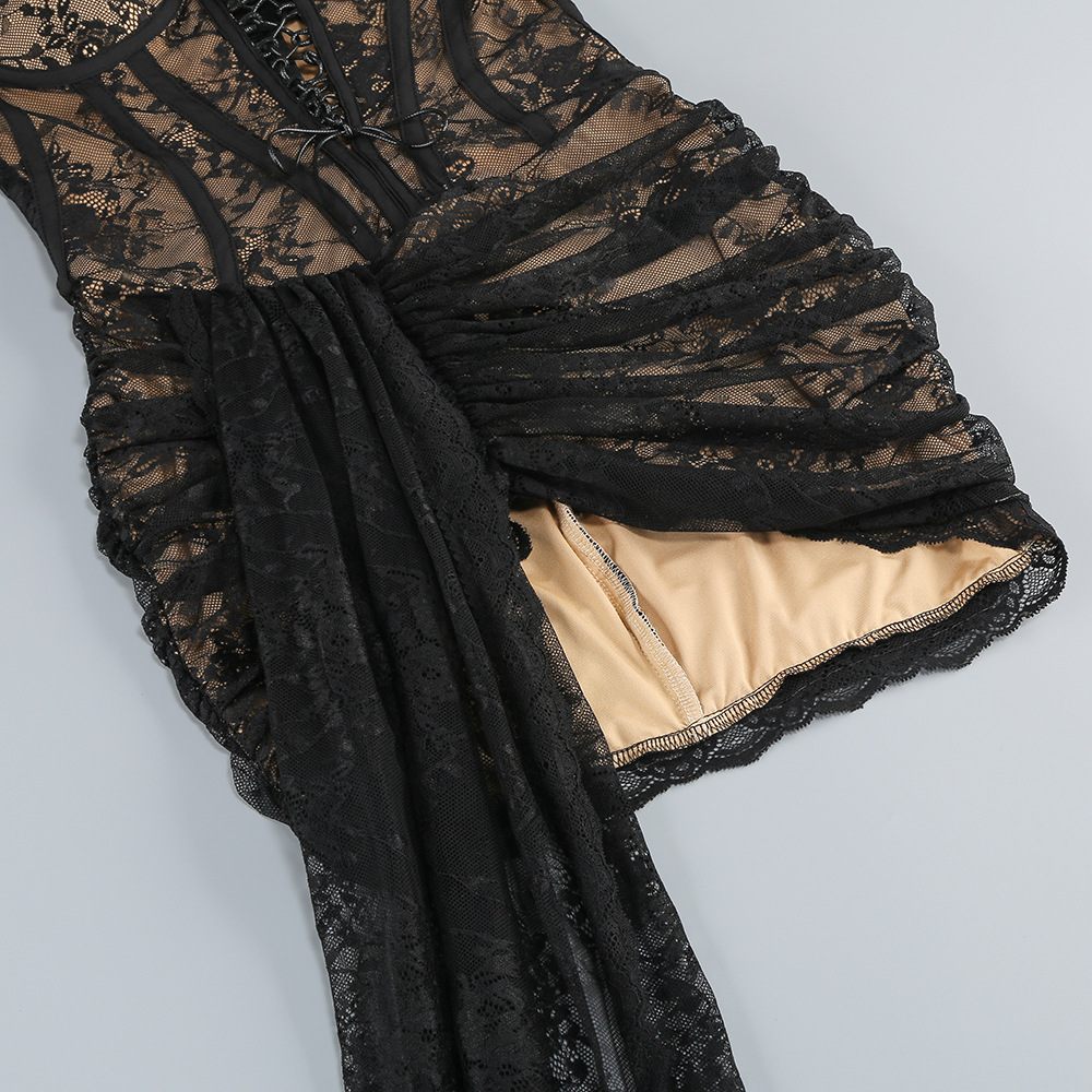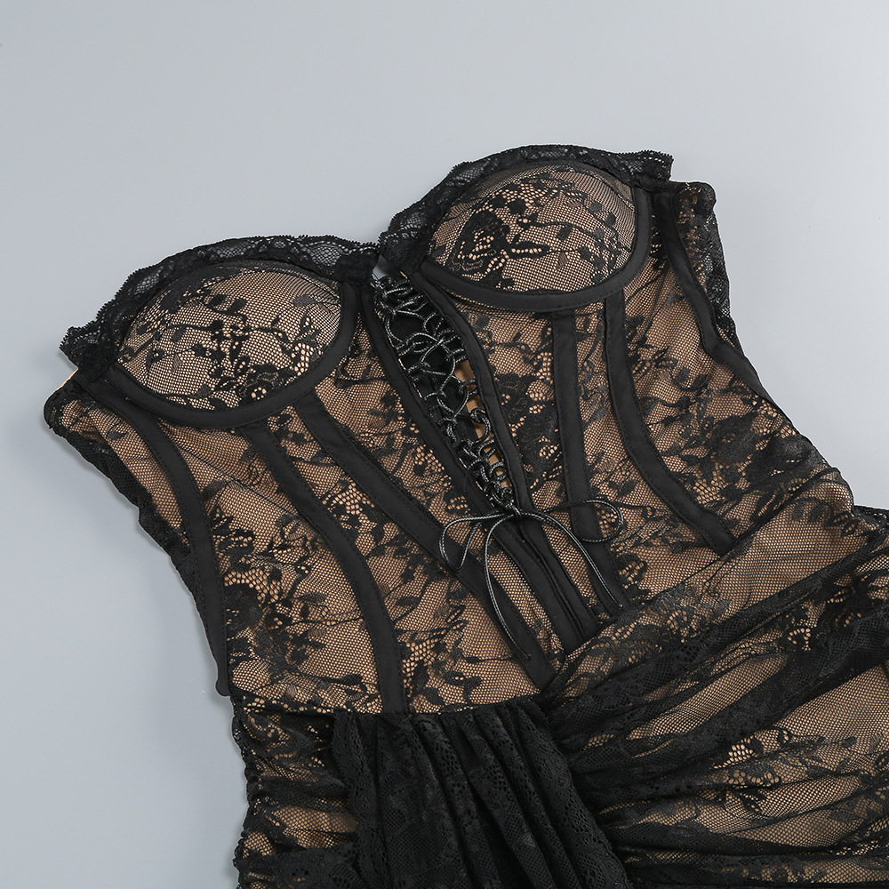 유럽과 미국의 국경 간 신제품 민소매 백리스 스트랩 레이스 드레스 섹시하고 패셔너블한 슬림핏 불규칙 스커트