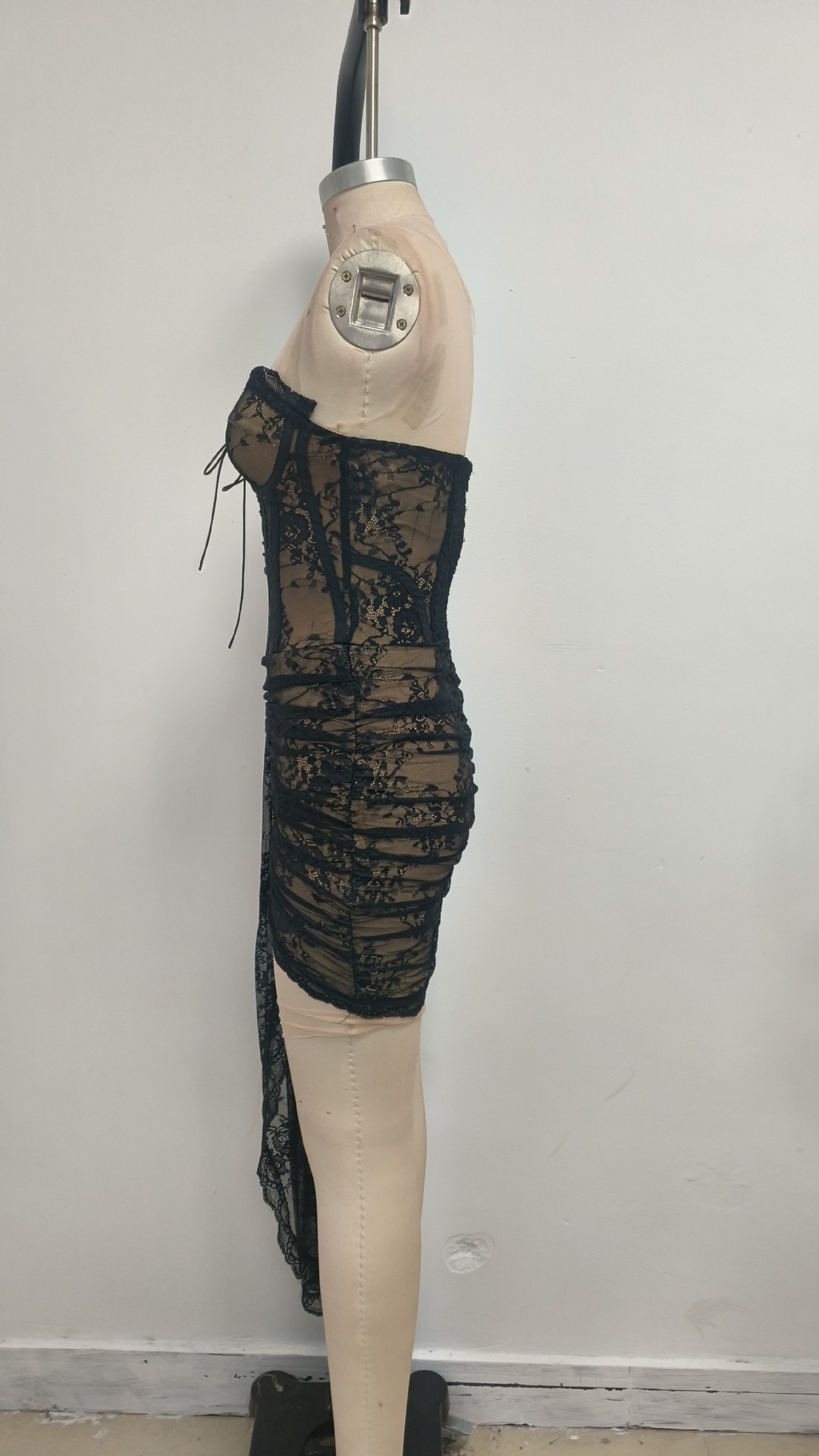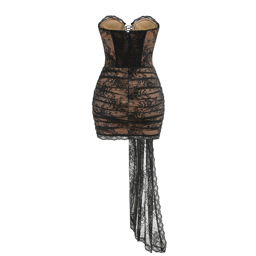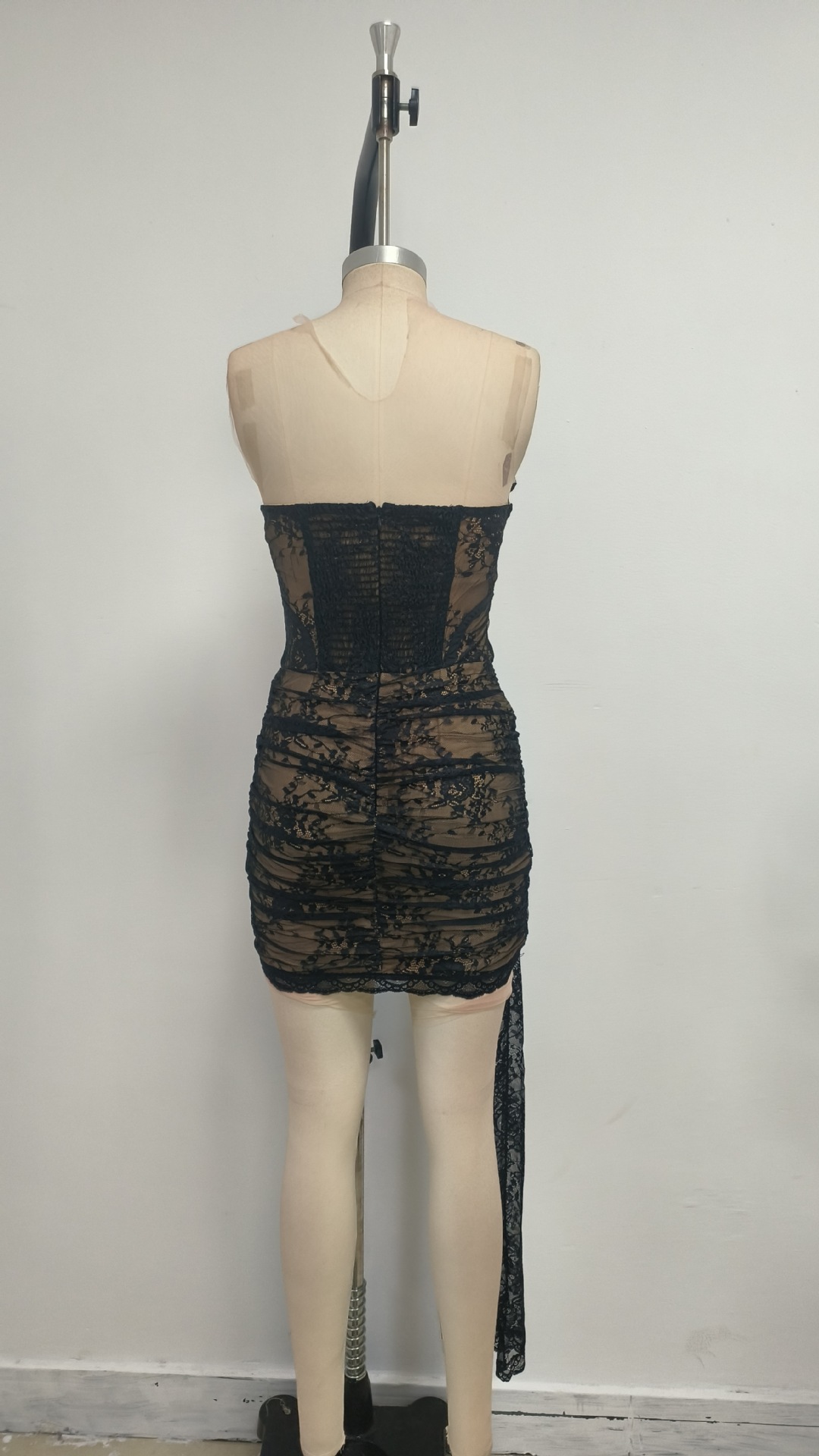유럽과 미국의 국경 간 신제품 민소매 백리스 스트랩 레이스 드레스 섹시하고 패셔너블한 슬림핏 불규칙 스커트