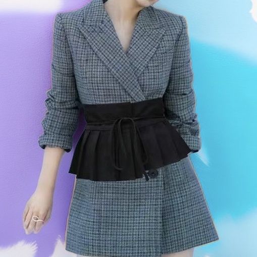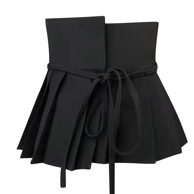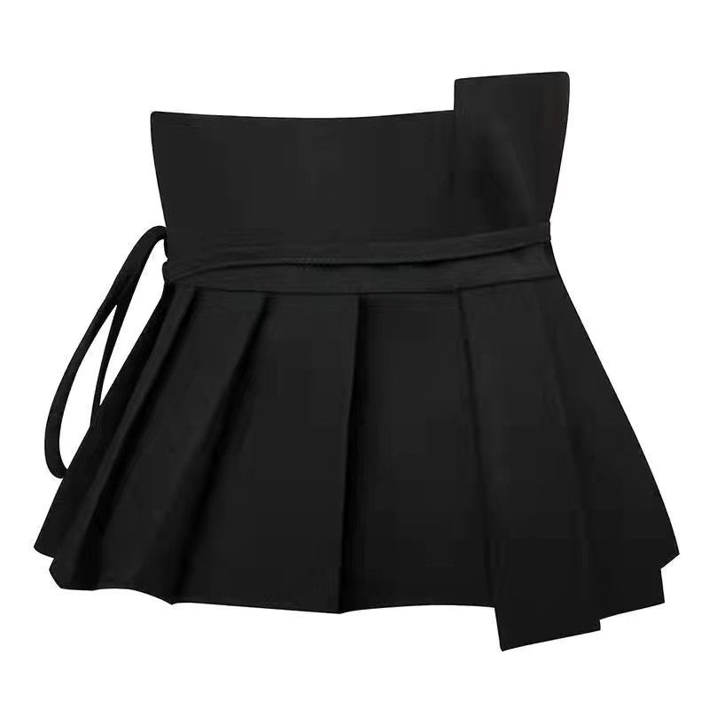 초단기 플리츠 스트랩 스커트 블랙 그레이 하이웨이스트 하이 스트리트 스타일 신축성 있는 슬리밍 A라인 여성 허리 조절 배 조절 신축성 있는 하프 길이