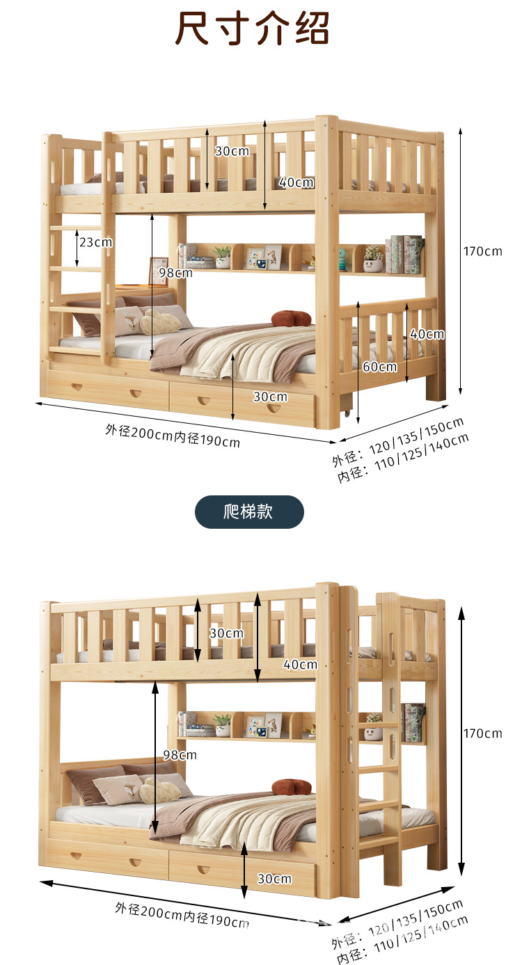 공장 직접 FSC 인증 전체 단단한 나무 침대 이층 침대 성인 어린이 더블 침대 기숙사 아파트스토어 가기