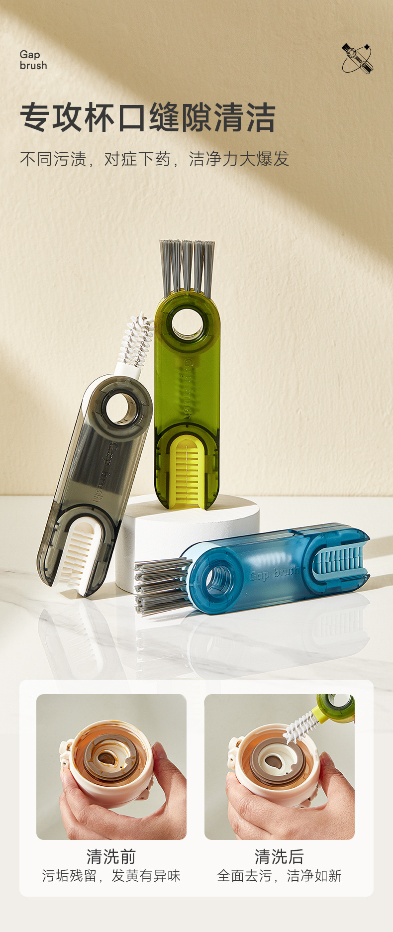 보온병 컵 브러쉬 클리닝 컵 컵 워터 컵 여행 병 다기능 청소 컵 커버 티 컵 3 대 1 갭 브러시 신스토어 가기
